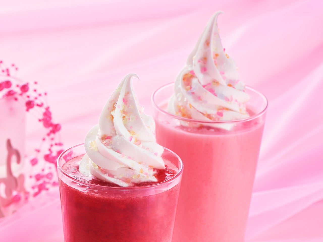 まさに“飲むキャンディ”とも言えるような、「いちごみるく」の味わいを再現したスムージー。いちごの優しい甘さと北海道産練乳のコクやまろやかさが見事に融合した味わいは、あの「いちごみるく」の味を再現。トップには濃厚なソフトクリームがトッピングされ、より濃厚でミルキーな仕上がりに。そして最後には、宝石のように輝く「いちごみるく」と「サクマドロップス」のキャンディグリッター※が振りかけられることで、華やかな見た目と味の変化を楽しめる一品となりました。