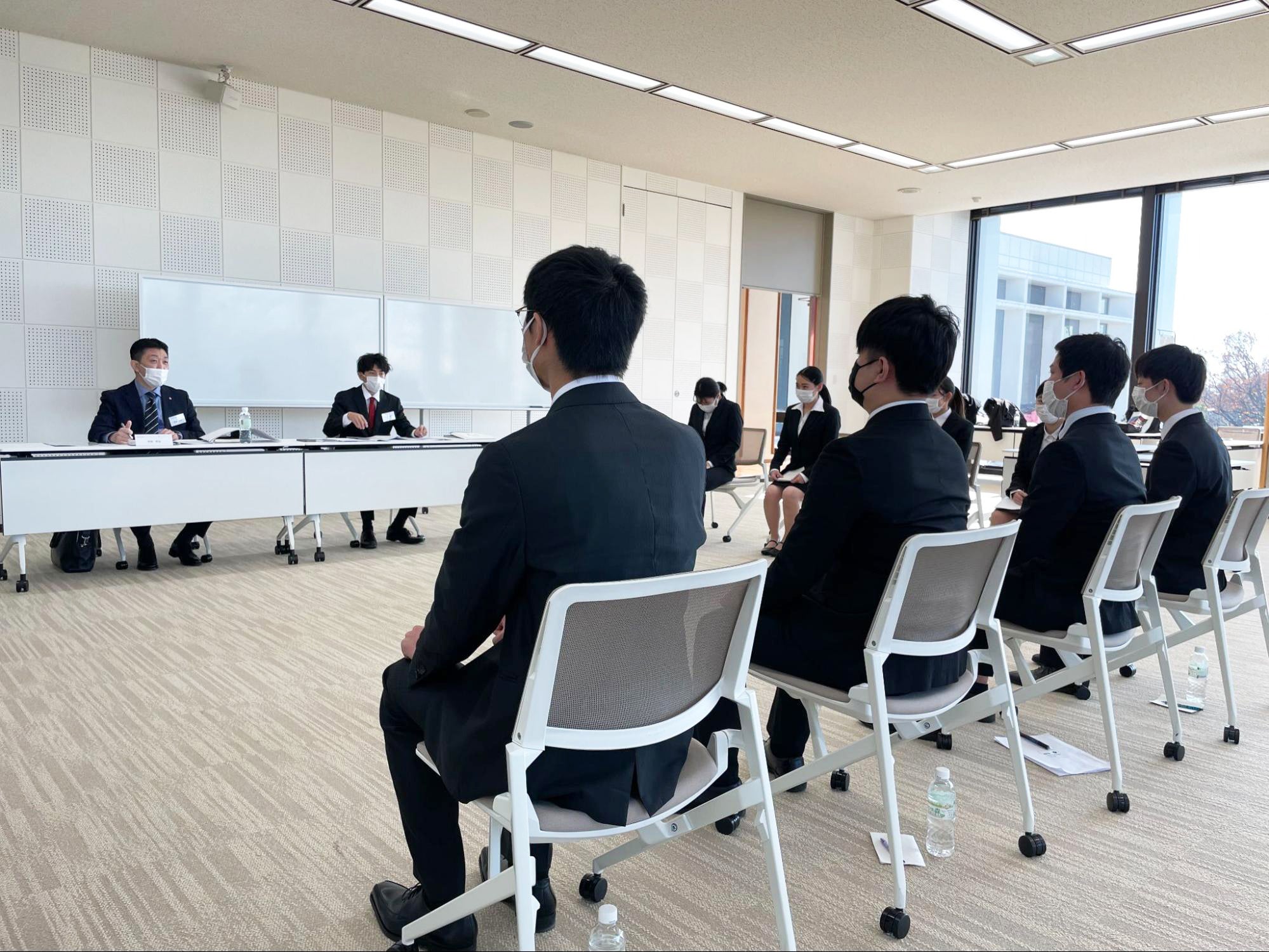 この研修会は、就職活動を控えた3年生を対象に『意識改革』を目的とした1泊2日の合宿型研修であり、今年度は今年9月に学内に完成した国際寮を宿舎として利用し、合計154名の学生が参加いたします。研修会では、実際の企業採用担当者を相手に本番さながらの模擬集団面接、模擬個人面接、ウェブを活用したオンライン模擬面接を通して、現在の実力を認識し、改善点に気付くことができ、来るべき就職活動に備えていきます。近年は、大学生が優位の「売り手市場」と言われていますが、依然、採用基準が厳しい企業は多くあります。何回も練習を繰り返し、アドバイスをいただく中で、参加者は徐々に自信へとつながっていきます。