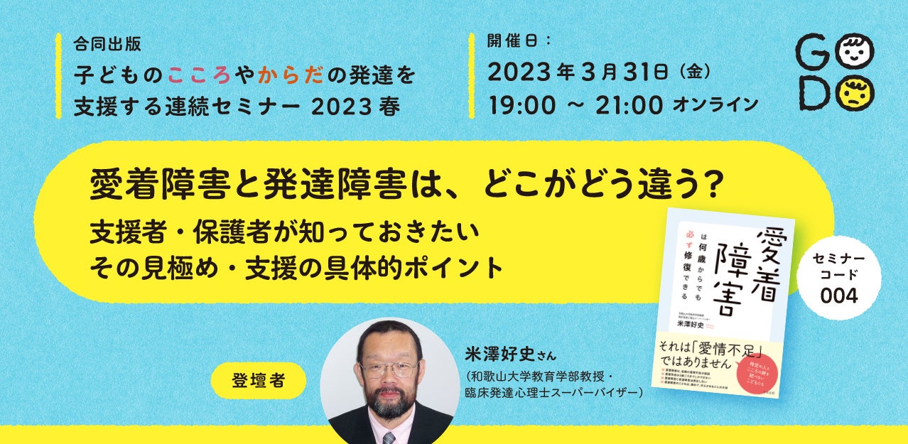 セミナーコード004「愛着障害と発達障害は、どこがどう違う? 支援者・保護者が知っておきたいその見極め・支援の具体的ポイント」