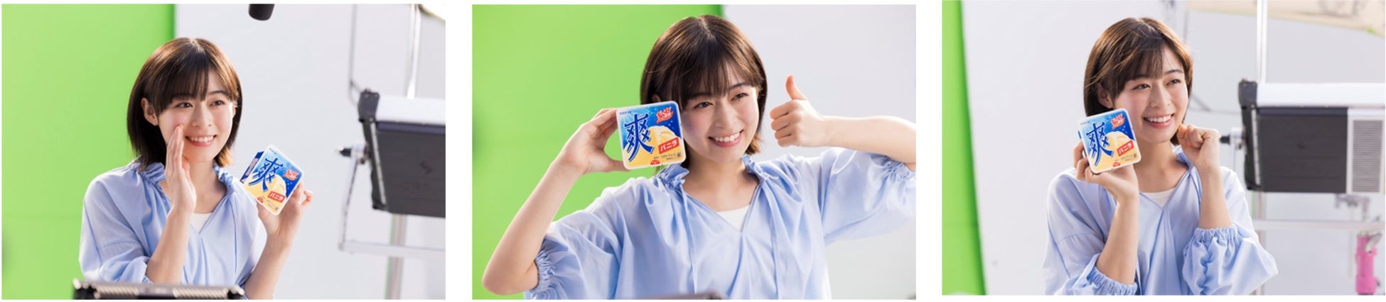 はい、ばっちり爽で休憩しながら撮影ができました!ロケで外に出ていることが多くて、そういった時の休憩中に「爽」を食べるのですが、変わらないというよりか、「こんなに美味しかったけ?!」と新たな魅力を発見します。特に、夏になると絶対に食べたくなる、あの感動をまた味わいたくなる美味しさなので変わらないというよりかは、毎年もっと好きになっているアイスです。