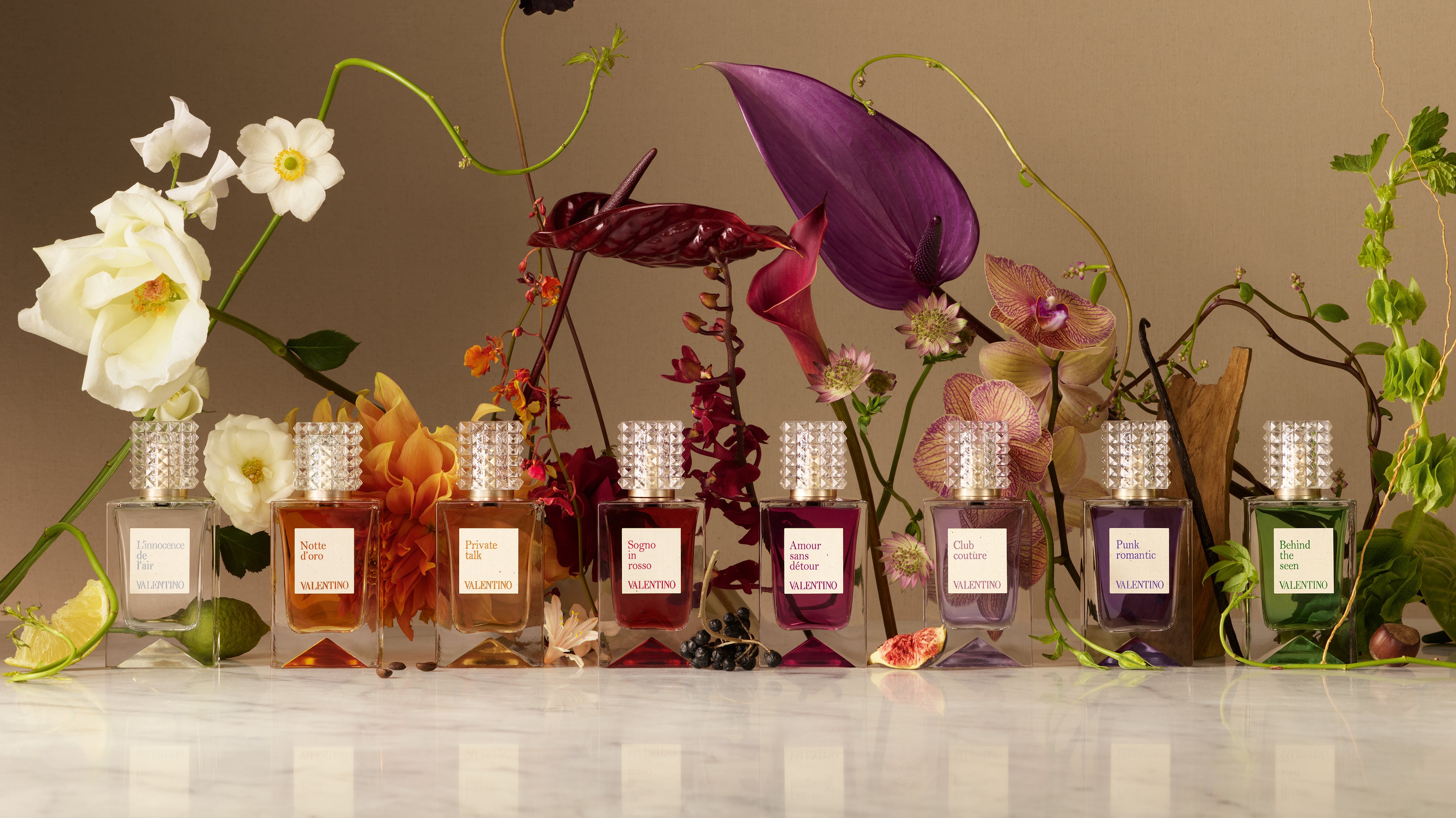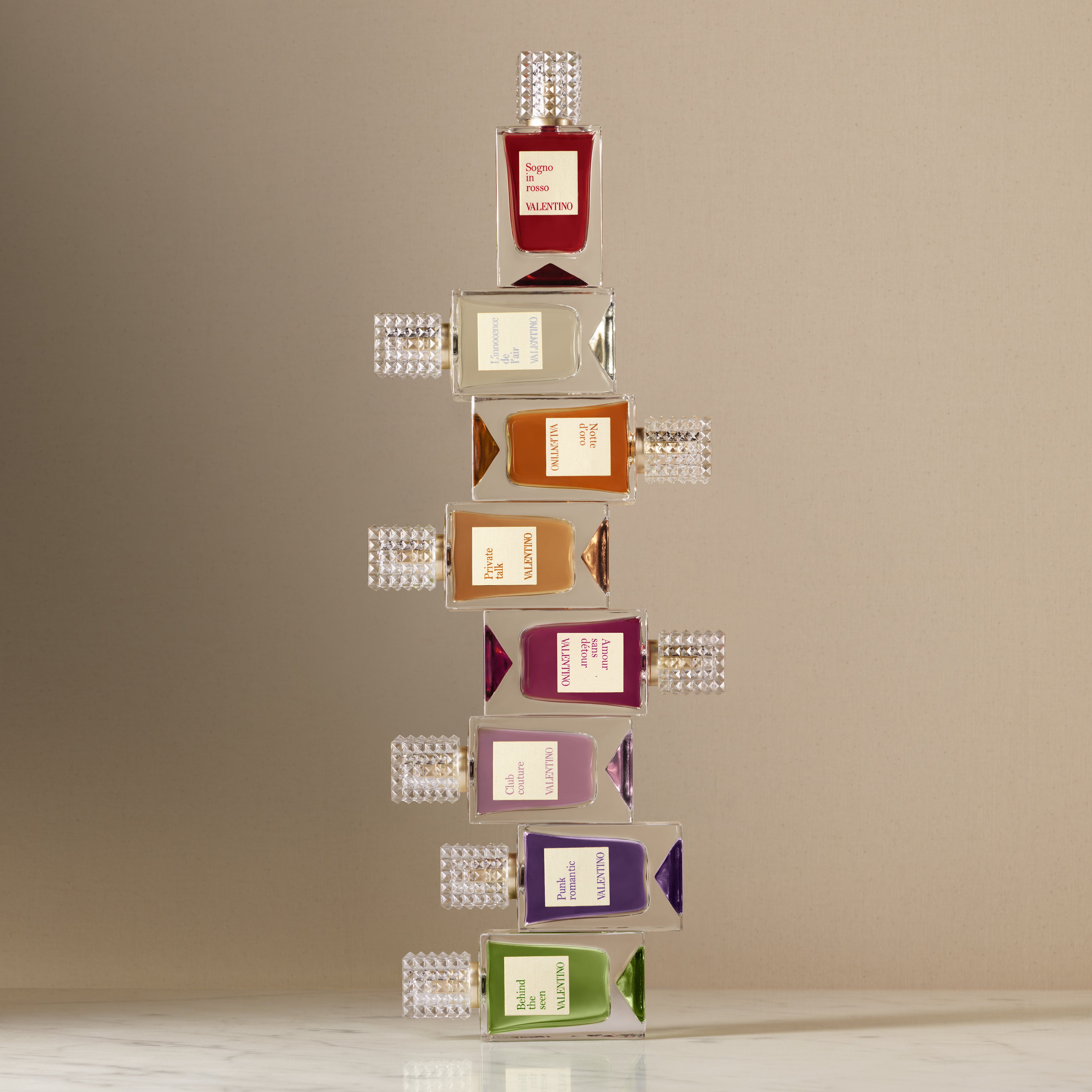 大きな噴水のある庭園、人目につかない書庫、フィッティングサロン、プライベートシアター、バロック様式のバンケットルーム、秘密の階段、プライベートな寝室、そしてローマの街を一望できる屋上 ― 「ヴァレンティノ アナトミー オブ ドリームス」は、卓越した調香師たちの手により、歴史あるローマ宮殿での活き活きとした夢の物語に、現代的な解釈が反映され誕生しました。