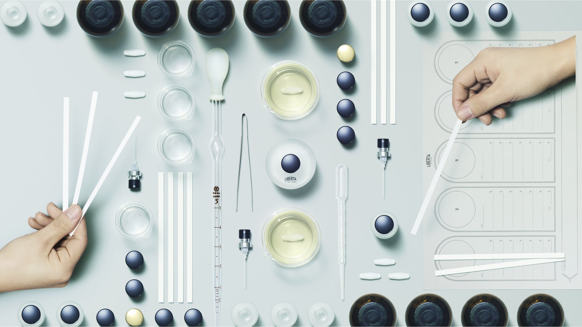 「香水の民主化」をコンセプトに東京の中目黒にラボパフューマリーを構え、日本人調香師の感性や日本の素材を活かした商品展開をしているリベルタパフューム。「フルオーダー」に関しては、調香師が1時間のカウンセリング内で、スタンダードベースとトッピング香料を最大6種類まで組み合わせ、ご自身だけの香りをご自由に調合できます。