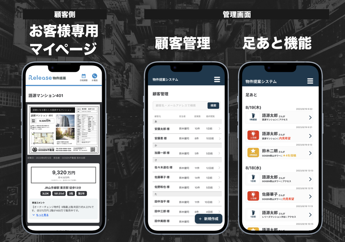 不動産売買仲介向けの営業DXサービス「Release(レリーズ)物件提案」をリリース エンドユーザーと営業担当のコミュニケーションをデジタルで繋ぐ、不動産営業DXを提案