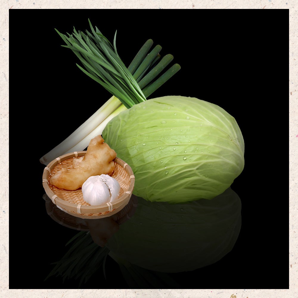 使用する野菜の鮮度を重視し、すべて国産のものから採用しています。特に、にんにくは香りの良い青森県産の「福地ホワイト六片」にこだわり、キャベツ、ニラ、玉ねぎ、しょうがも厳選したものだけを使用。一日の使用分のみをカットし、フレッシュな食感をそのまま閉じ込めました。