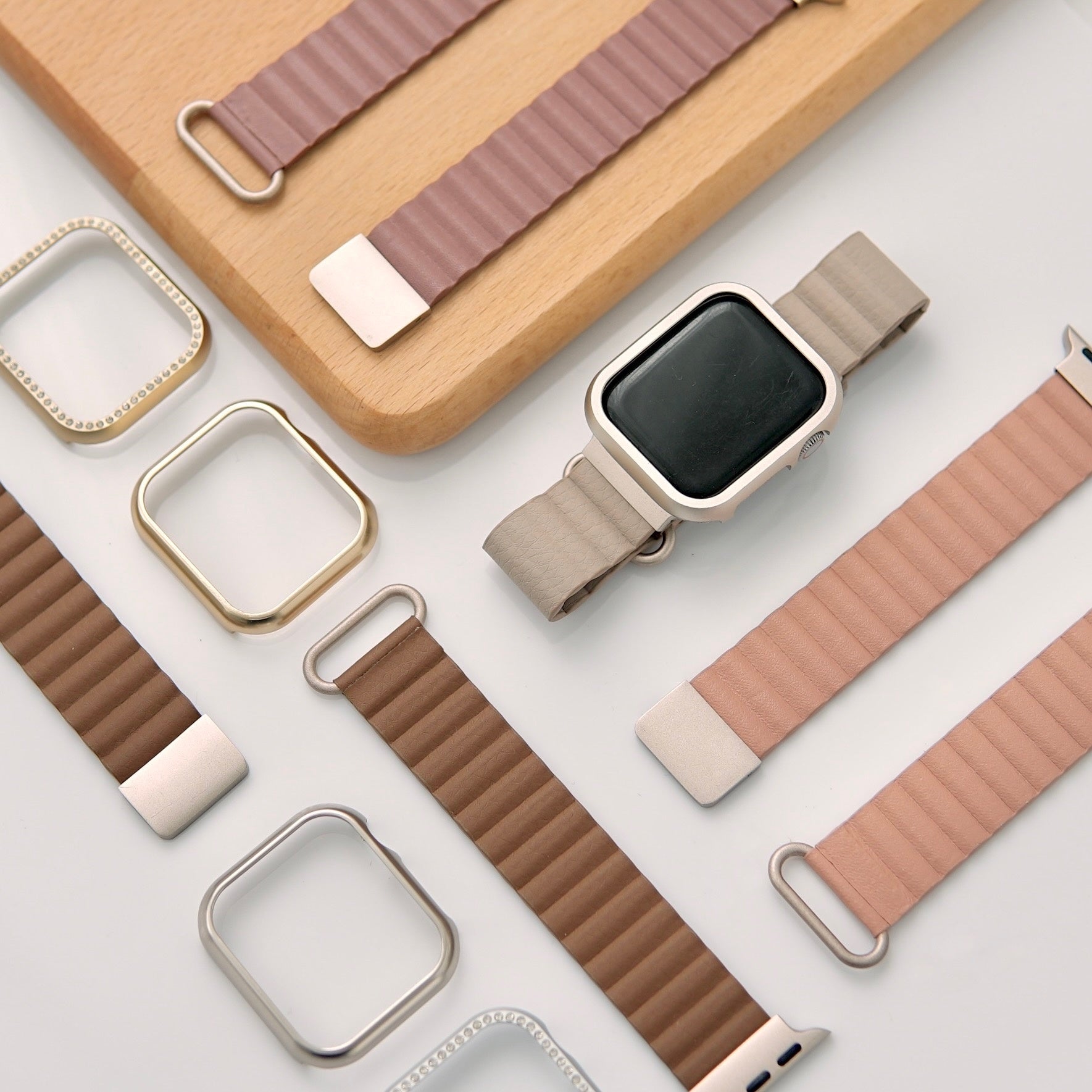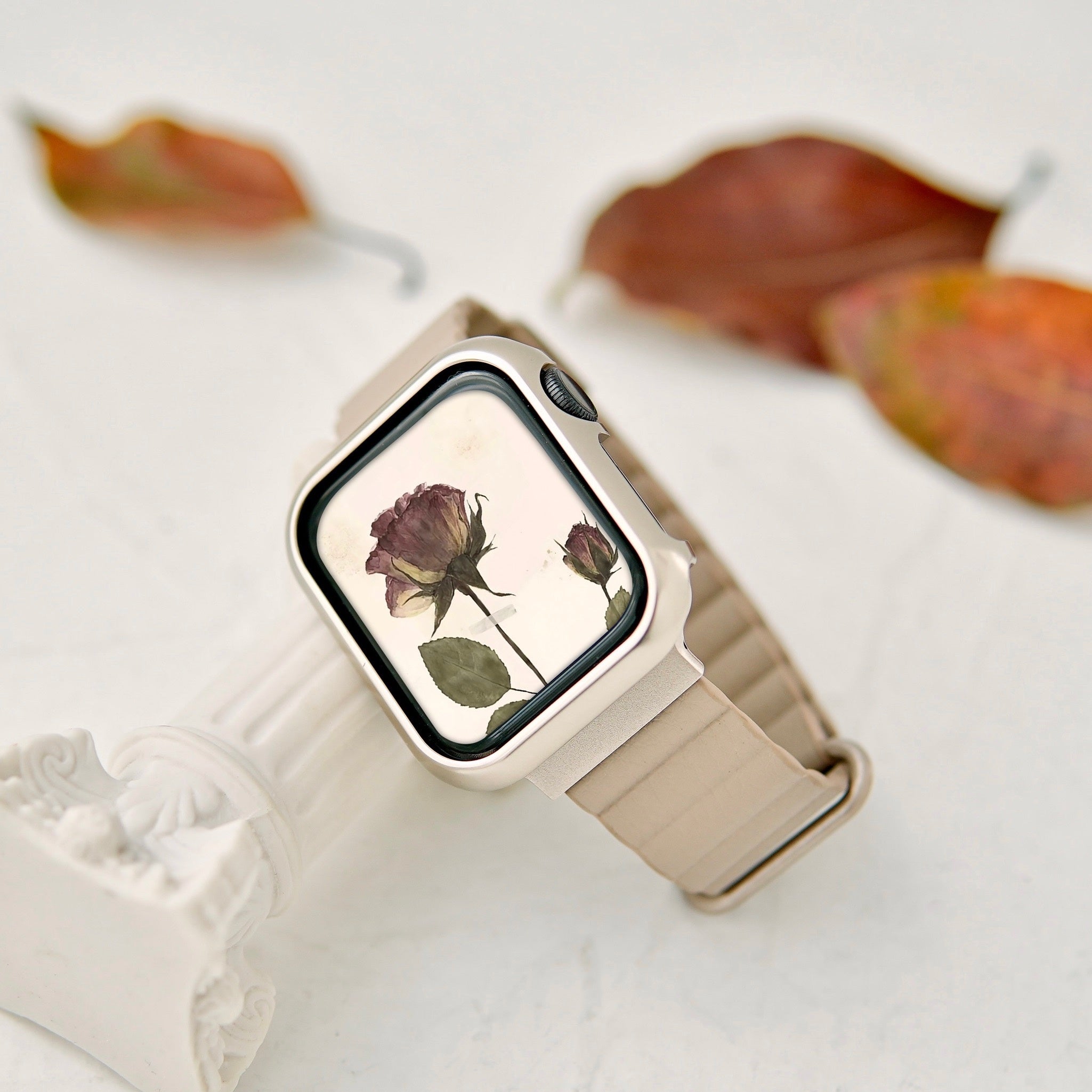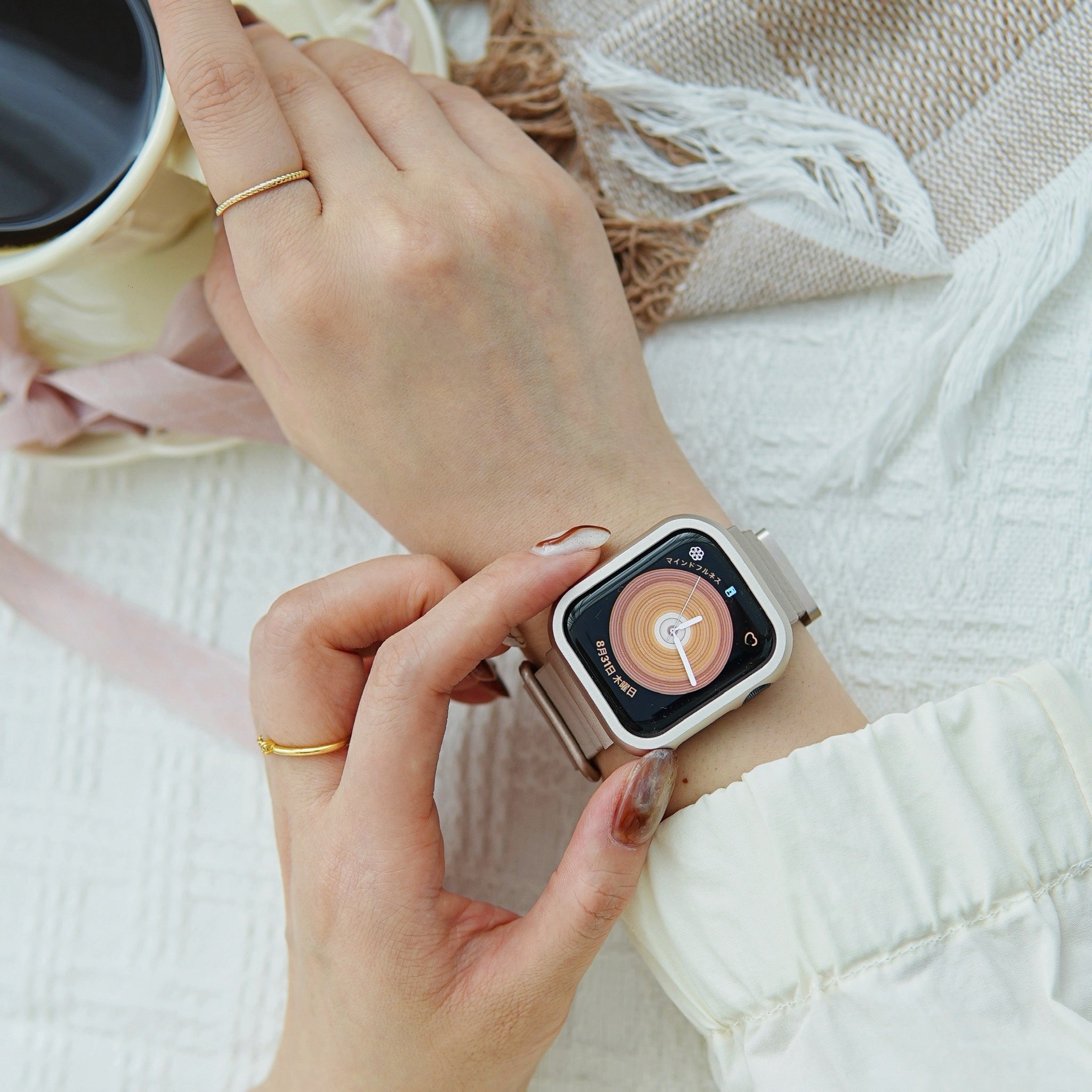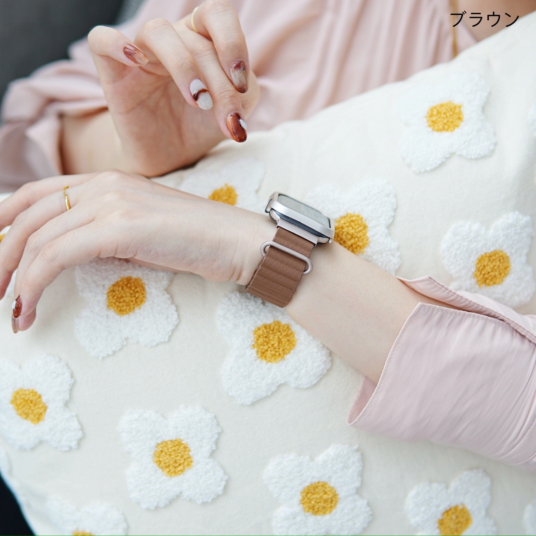金具部分はアップルウォッチ人気カラーのスターライトと相性が良い色味を取り入れ、少しくすみがかった大人で上品な雰囲気を纏います。