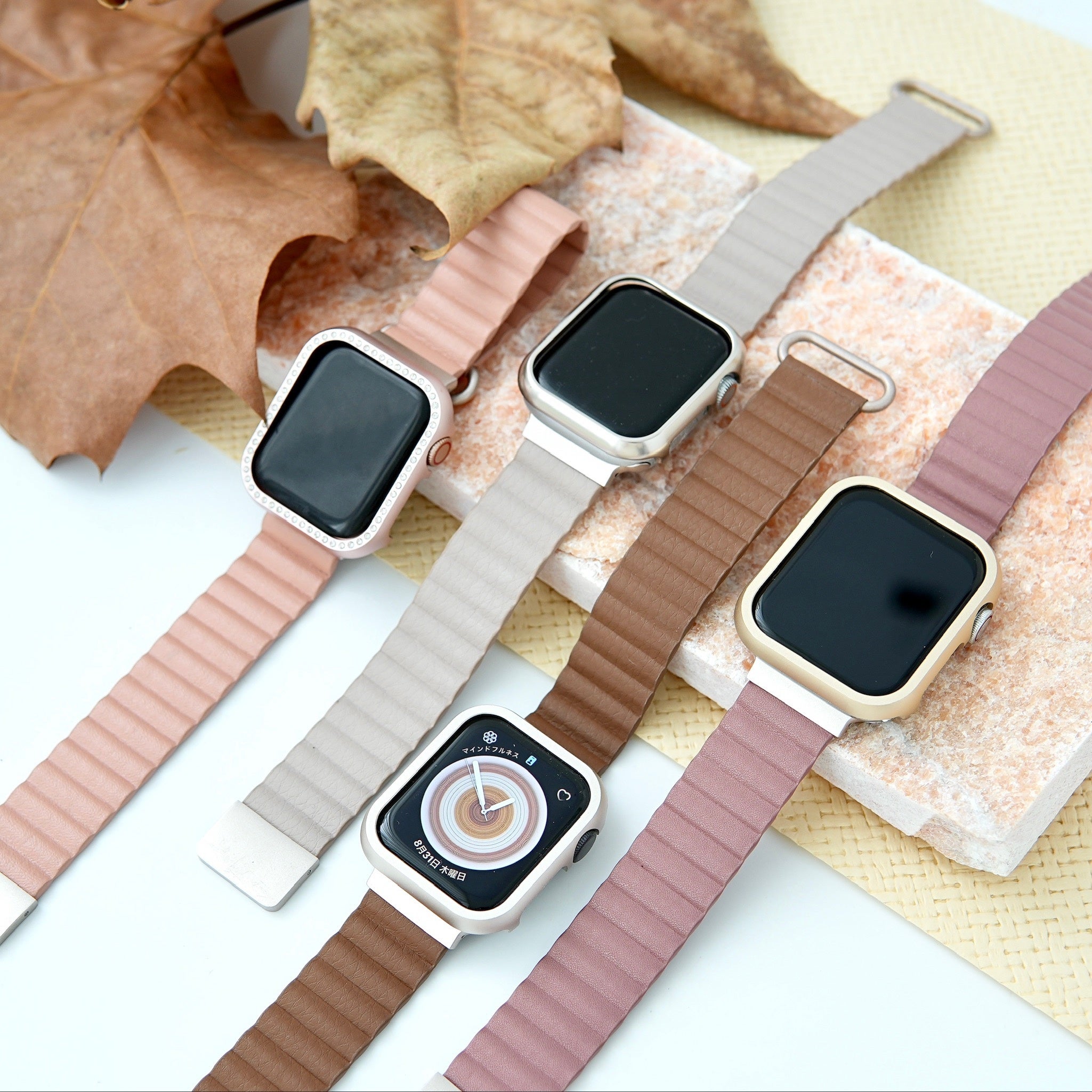 「ぴったりライン」マグネット式PUレザーアップルウォッチバンド