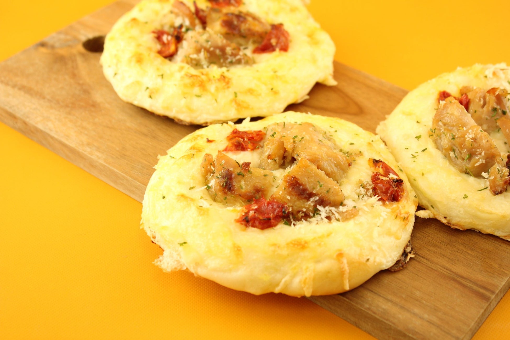 自家製ホワイトソースとパン粉付けしたチキンをトッピングし焼き上げました。