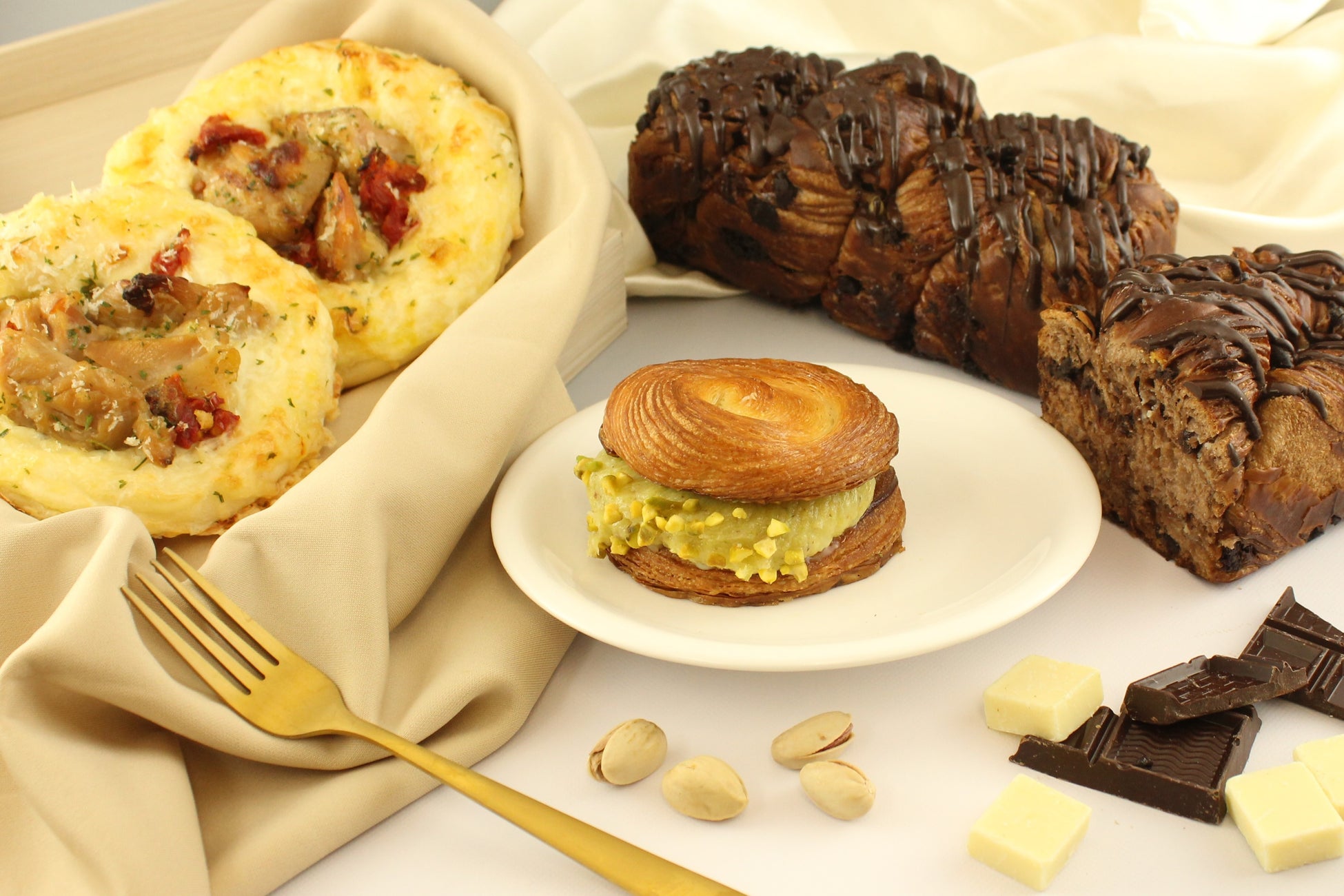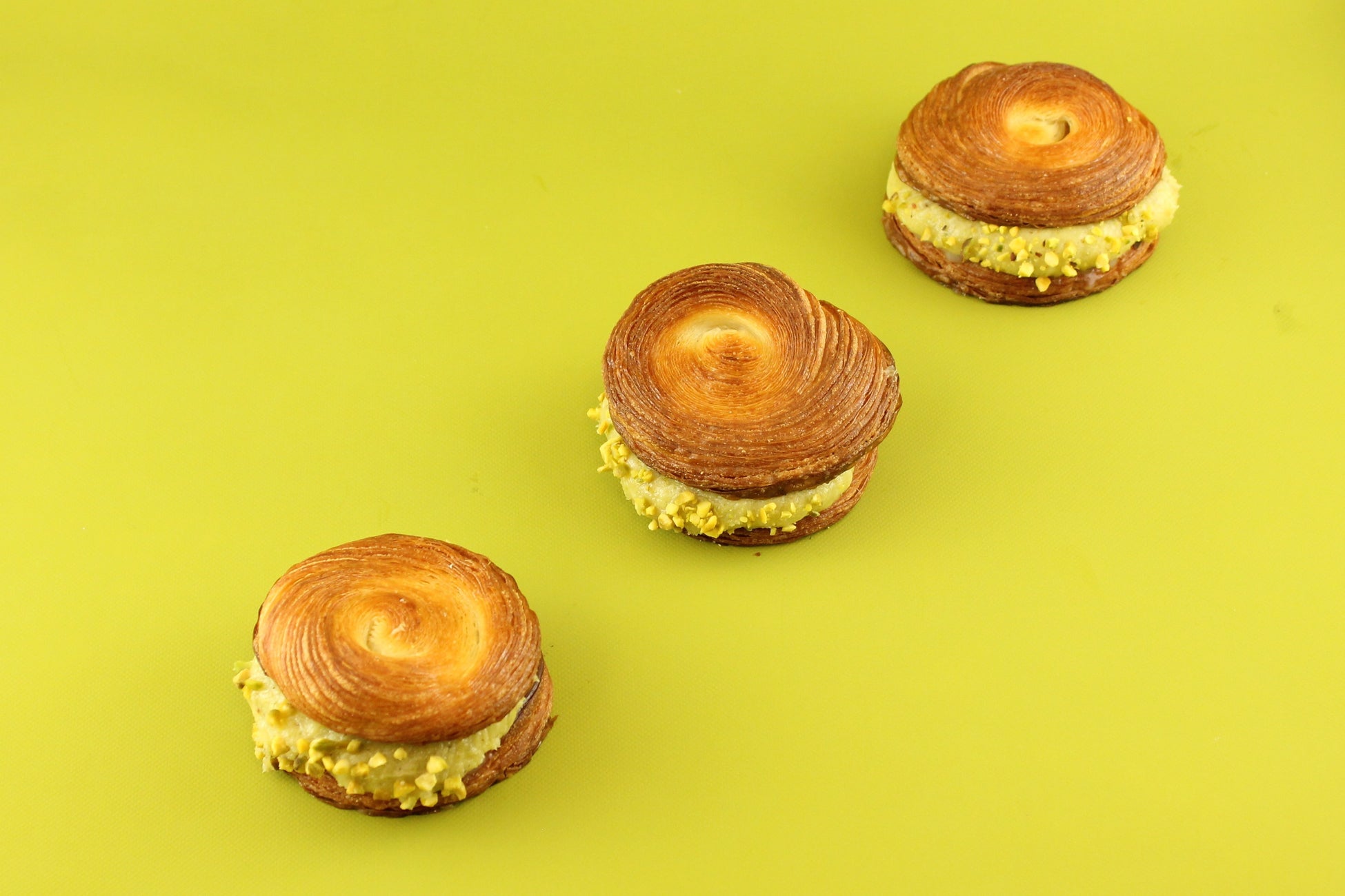 がりっとしたデニッシュにピスタチオクリームをサンドしました。