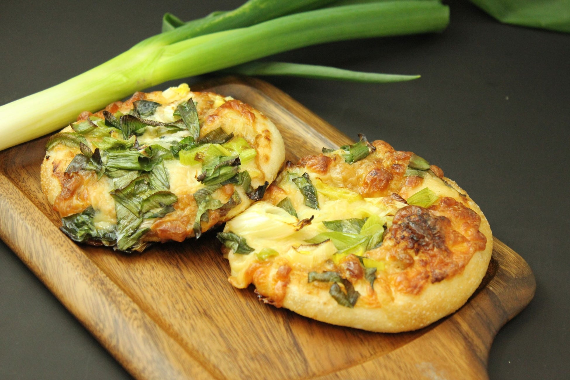 お水をたっぷり含ませて作った もちもち食感のフランスパン ロデヴ生地に、兵庫県朝来市産の岩津ねぎと岩津ねぎを使用したねぎ味噌をトッピング!仕上げにチーズをかけてピザ風に仕上げました。
