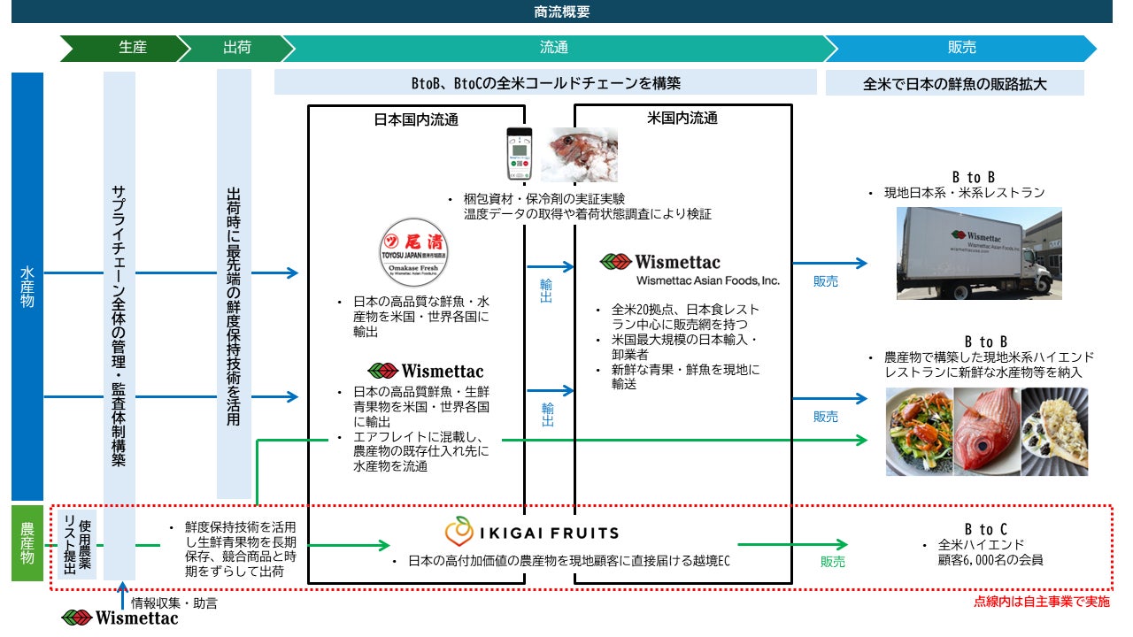 Wismettacは創業以来、日本のみならず世界の食卓を豊かにするという理念のもと、100年以上の歴史を積み重ね、食の分野においてグローバルに土台を築いてまいりました。国際的に“食”のネットワークを構築し、アジア食品・食材を中心とした卸売事業を展開するほか、国内輸入青果事業に加えて、アジア諸国をはじめとした海外に向けて、付加価値の高い日本産青果物を輸出しております。この度「令和6年度サプライチェーン連結強化緊急対策」において、補助事業者として採択されたことにより、米国における生鮮青果・鮮魚のサプライチェーンを構築・強化しながら、グループでのシナジー効果により、日本の高品質な生鮮青果・鮮魚の輸出促進に貢献することを目指してまいります。