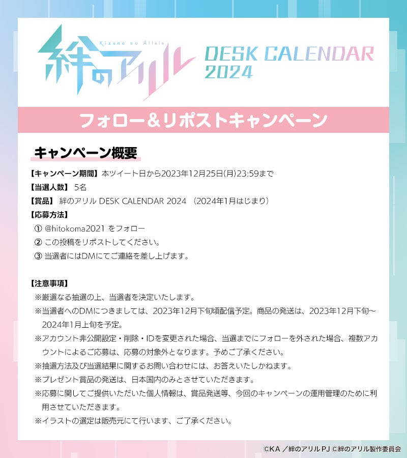 「絆のアリル DESK CALENDAR 2024」にセカンドシーズンの画像が新登場!Xでのフォロー&リポストキャンペーンも実施