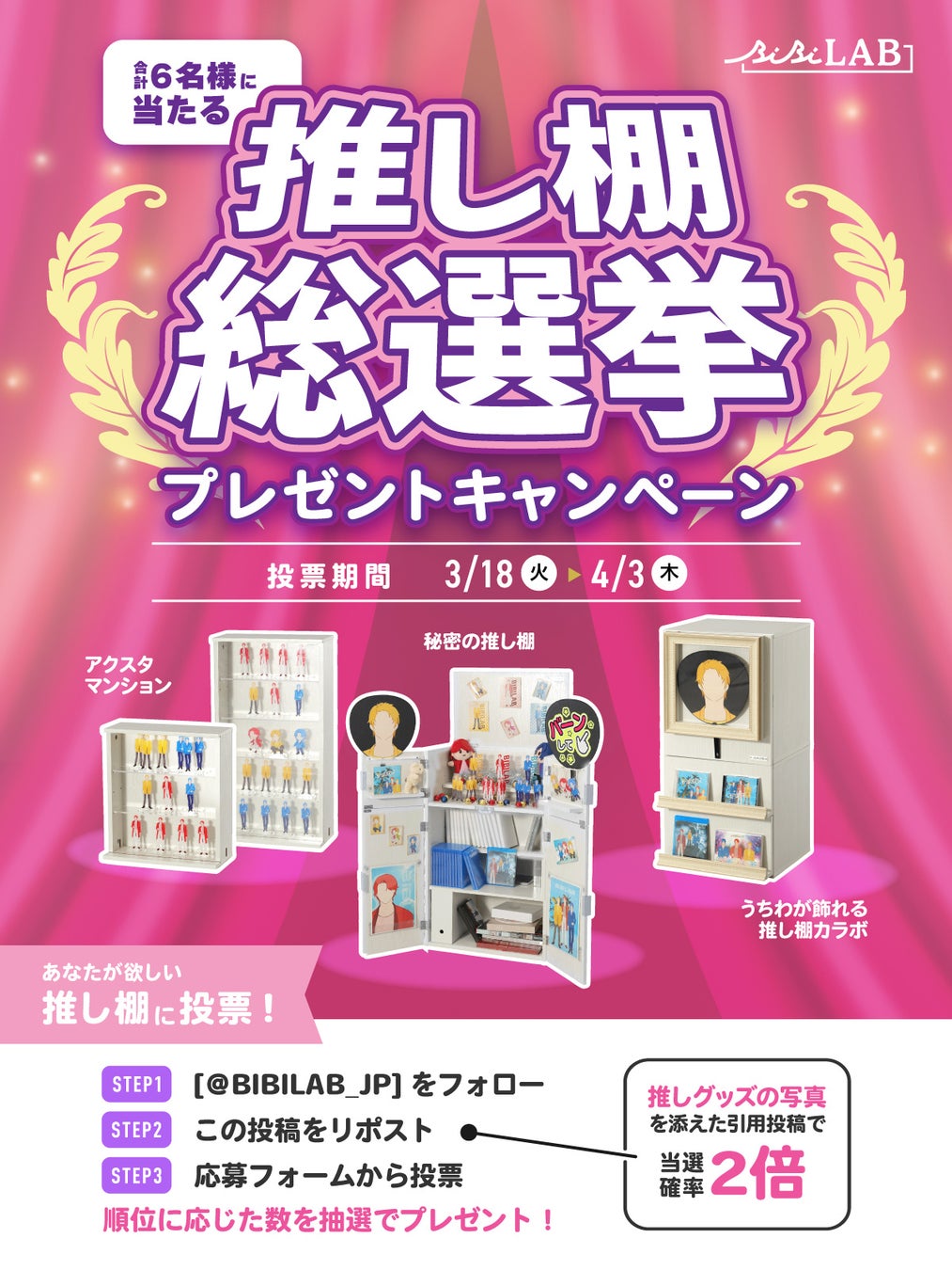 【推し棚 総選挙】あなたの推しを飾るならどれ?投票して豪華景品が当たる、ビビラボのプレゼントキャンペーンが開催!