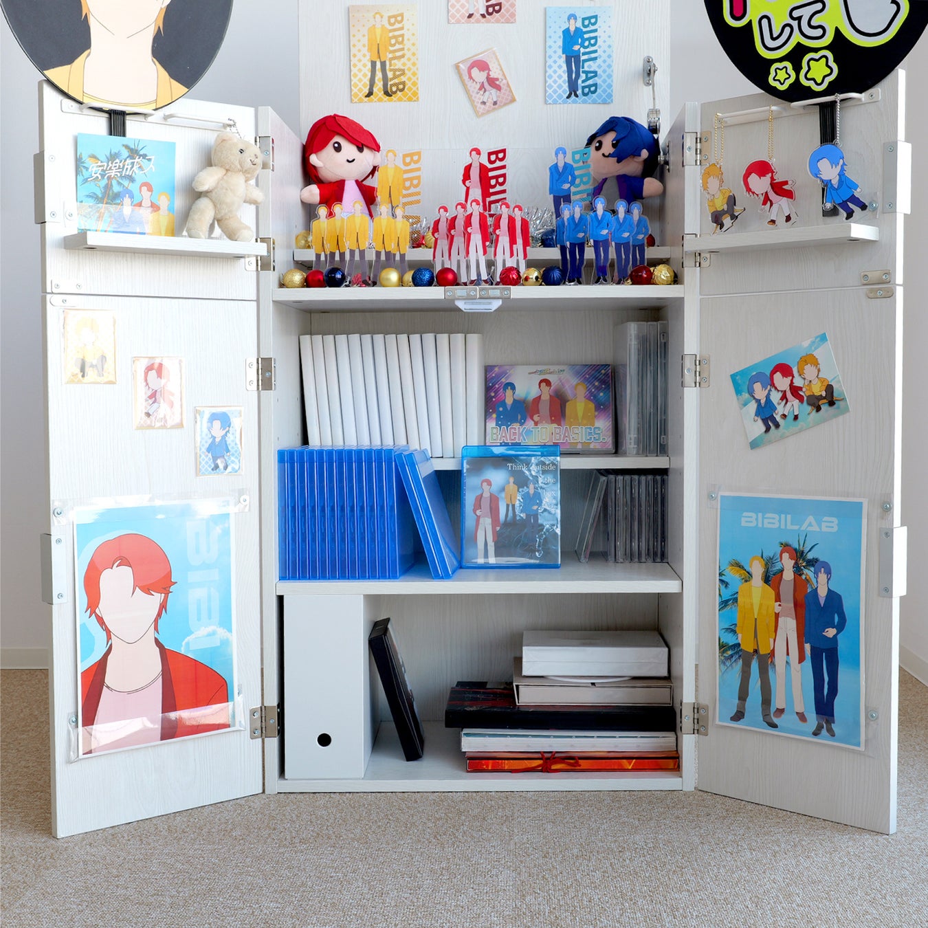 「魅せる」と「隠す」を2秒で切替え!推しは見ていたいけど見られたくはない複雑な乙女心で作りました。私のイチオシポイントは、勿体なくて使えないクリアファイルを飾れる下段扉です!