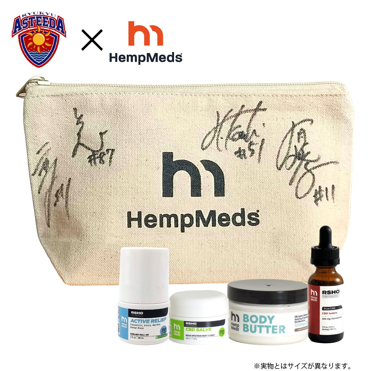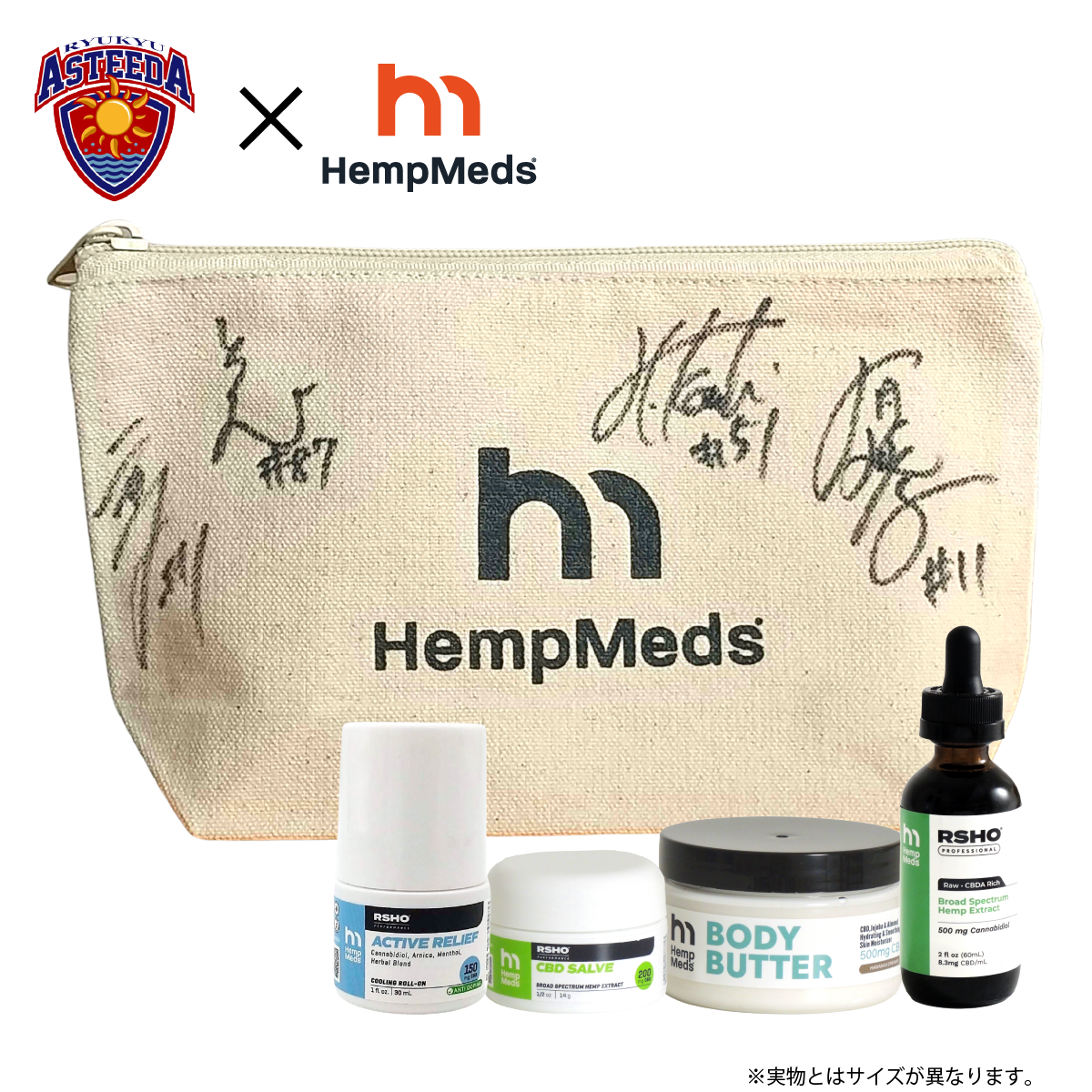 オフィシャルスポンサー契約を記念して琉球アスティーダ所属選手の「直筆サイン入りトラベルポーチ」付きのスペシャルセットを数量限定でHempMedsオンラインストアにて発売します。