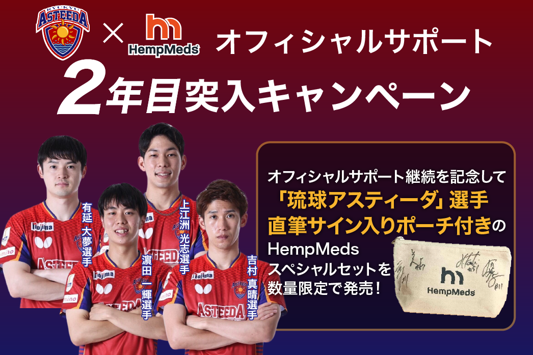【数量限定】琉球アスティーダ選手の直筆サイン入り特別セット発売!プロ卓球チームのオフィシャルサポートを記念してHempMeds(ヘンプメッズ)のCBDの製品