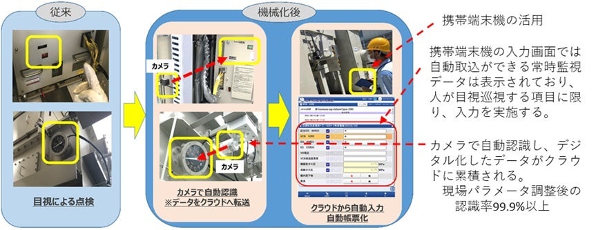 本システムは、受変電設備にカメラや各種センサを多数設置して常時監視を自動化することにより、人と機械が点検業務を分担し、現場における巡視点検に要する業務量の軽減や停電年次点検の頻度低減を図りながら、電気、保安品質の確保・向上を行うものです。
