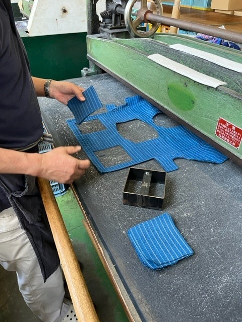 切り出した正方形は、株式会社ソーイング竹内(本社:兵庫県多可郡 代表取締役社長:竹内 裕児)にて、1つ1つ手作業で縫製や検品を行いました。
