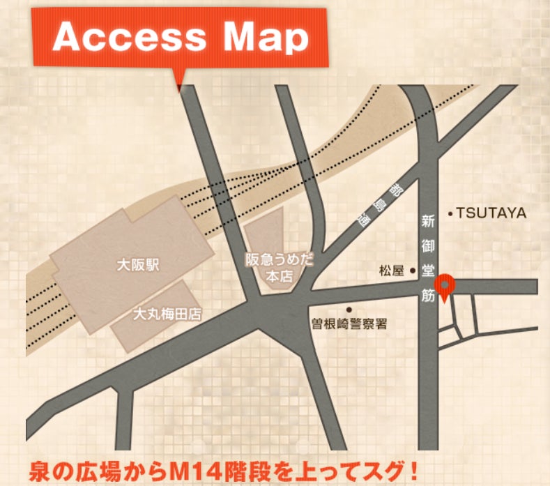 梅田駅から徒歩5分で、どなたでも集合しやすい便利なロケーション。