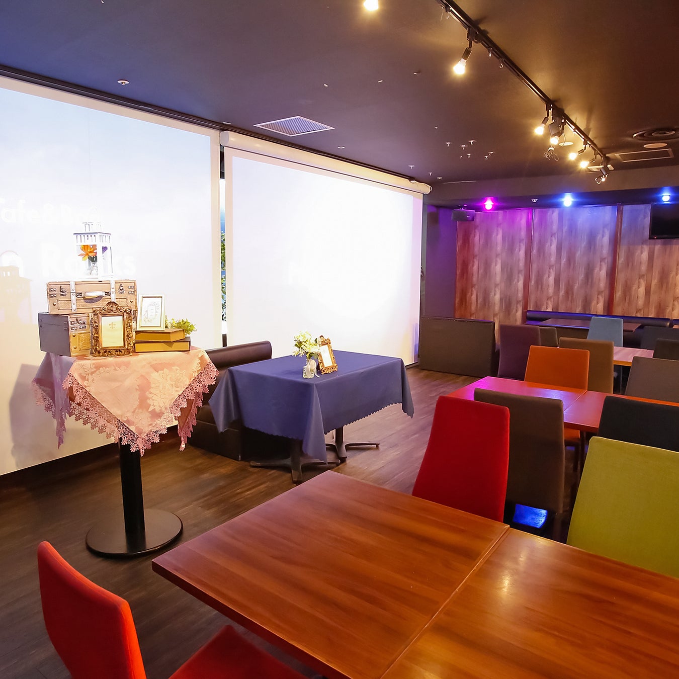 プロジェクター、音響設備、カラオケ無料利用。