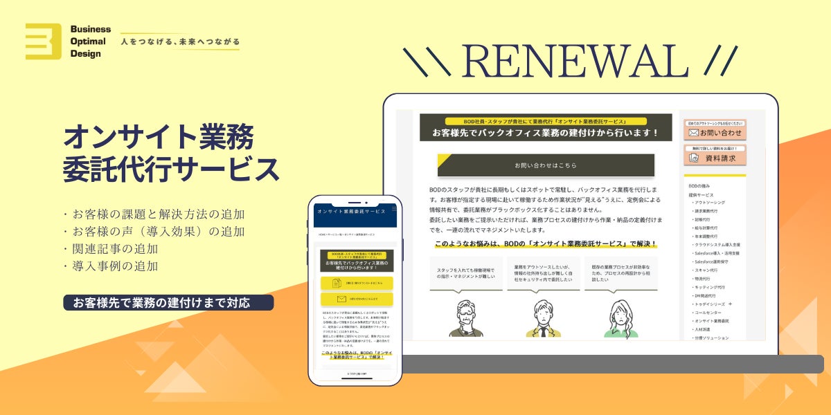 BPO事業のBODがオンサイト業務委託サービスWebページに「お客様の声」を反映しリニューアル