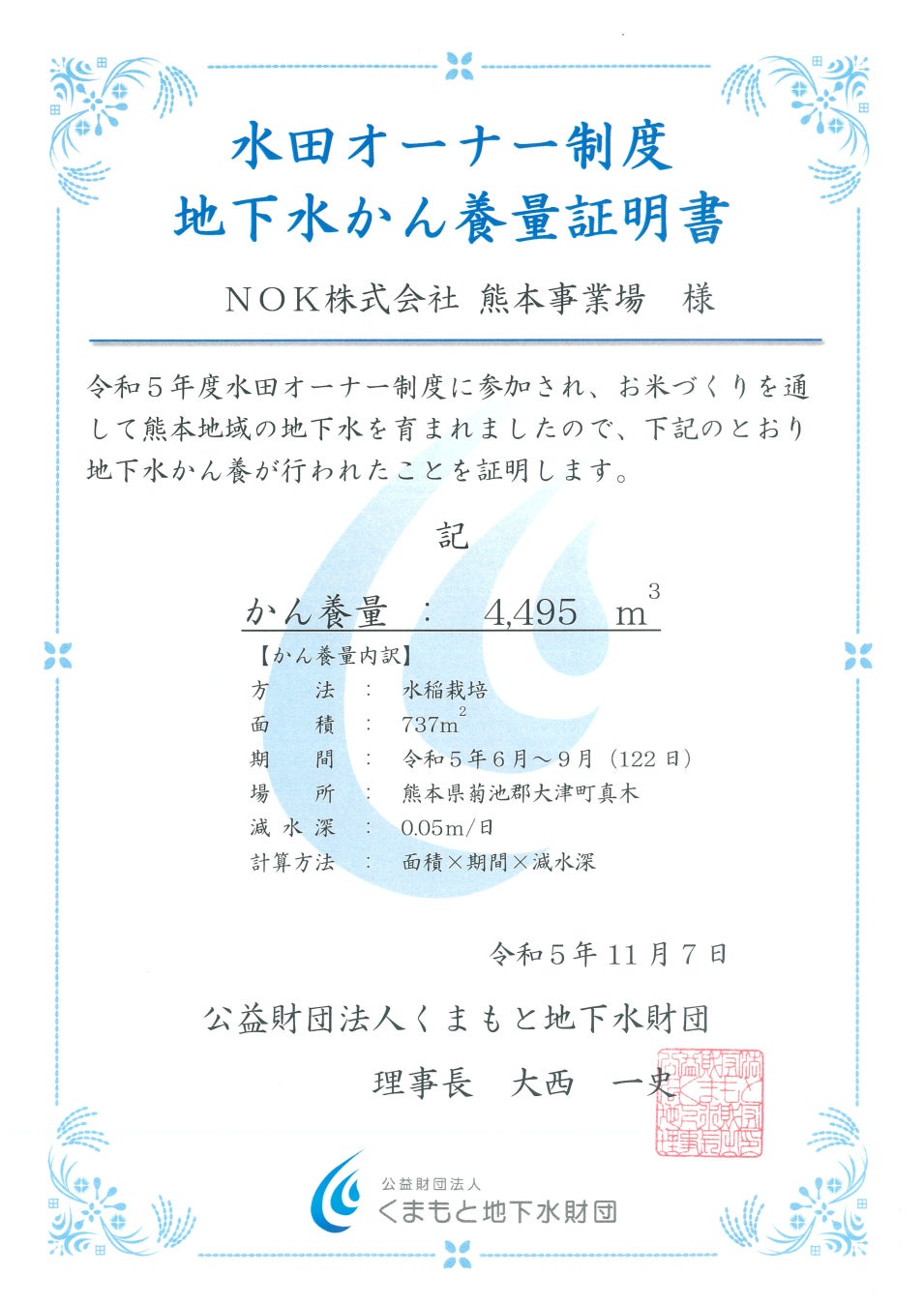 NOK熊本事業場は今後も、行政や地域の環境保全団体、市民の皆様と連携し、地域の資産である地下水の保全に取り組んでまいります。