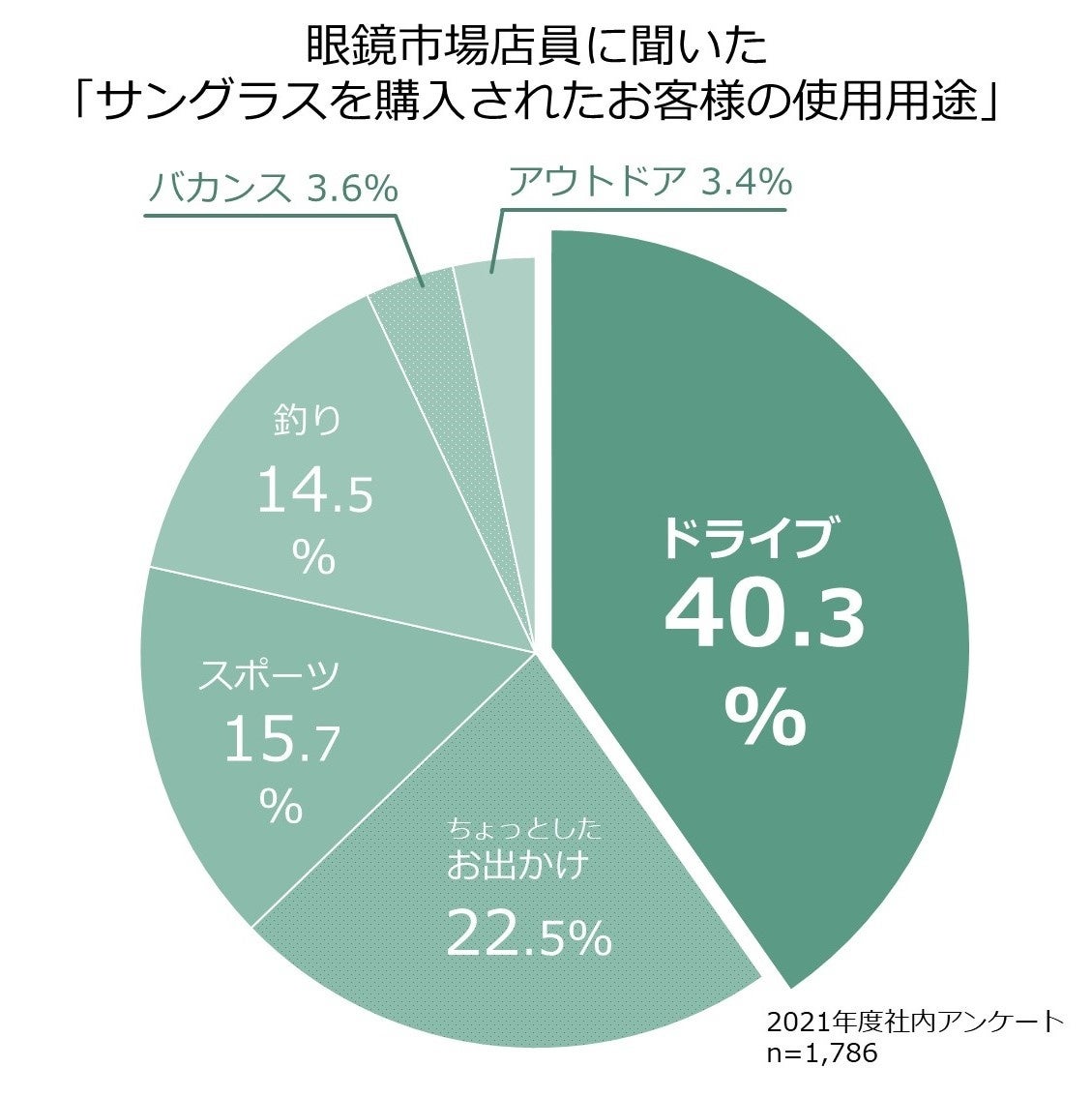 2021年に行った社内アンケートの結果、サングラスを購入されたお客さまのうち約4割が「運転用」を目的に購入していることが判明しました。アンケート結果を受け、「お客さまの生活に寄り添った快適なサングラスを開発する」といった思いから、運転時におすすめのサングラスを開発。
