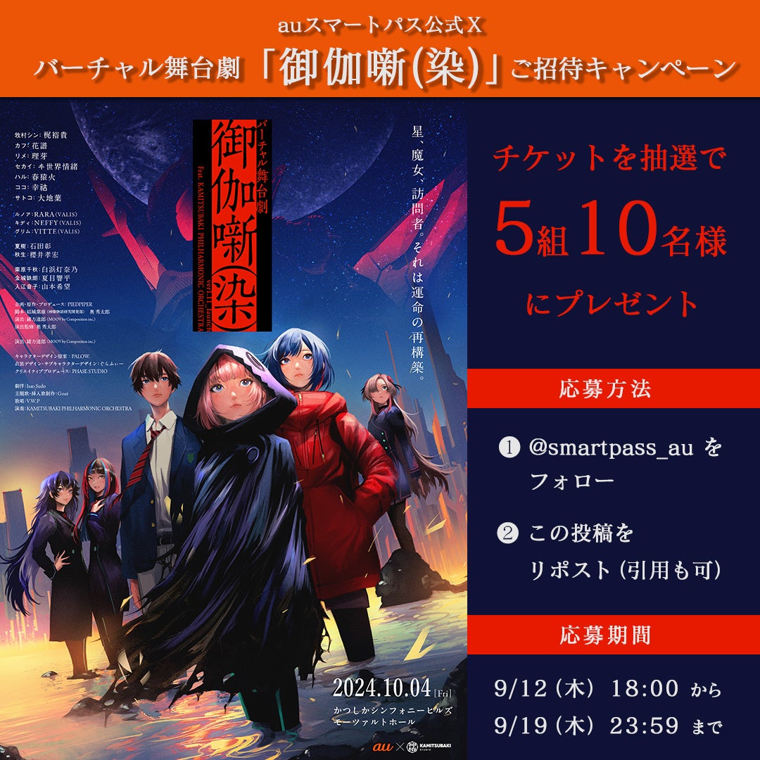 第1回公演を記念し、抽選で5組10名を公演にご招待する、auスマートパス公式Xのリポストキャンペーンを2024年9月19日まで実施します。