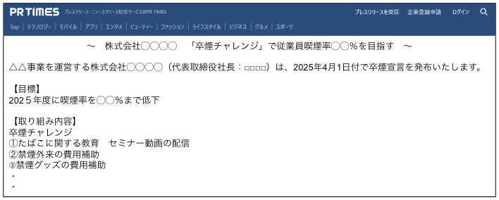 経営トップが卒煙に関する明確な目標や方針を示すことで、従業員に卒煙の重要性を伝えます。「オフけん」では、プレスリリースの原稿作成から配信までをサポートいたします。