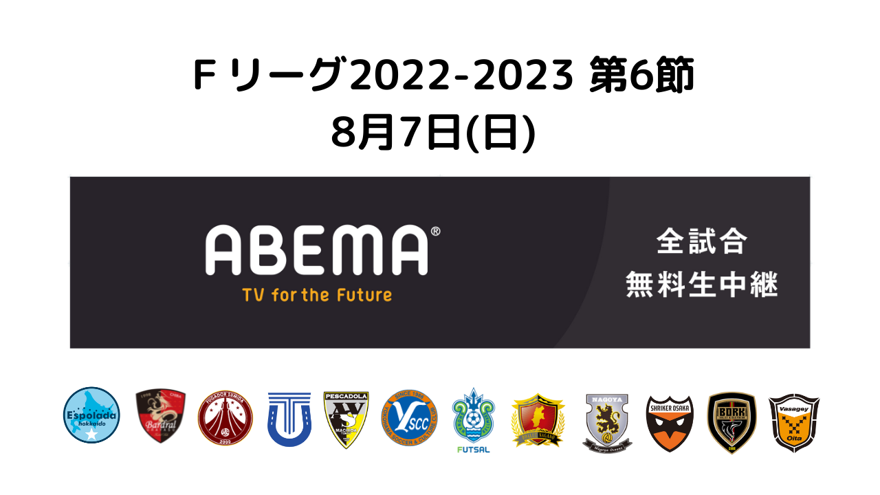 8月7日(日)にFリーグ2022-2023 ディビジョン1 第6節の1試合を開催いたします。