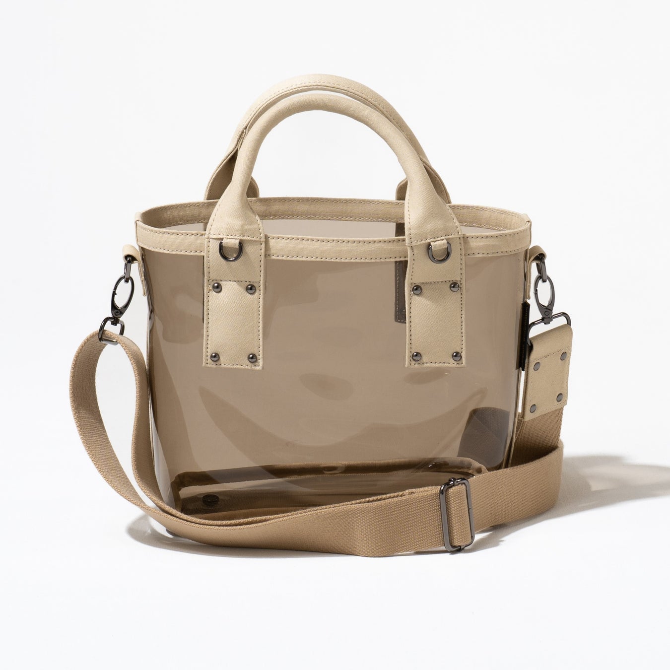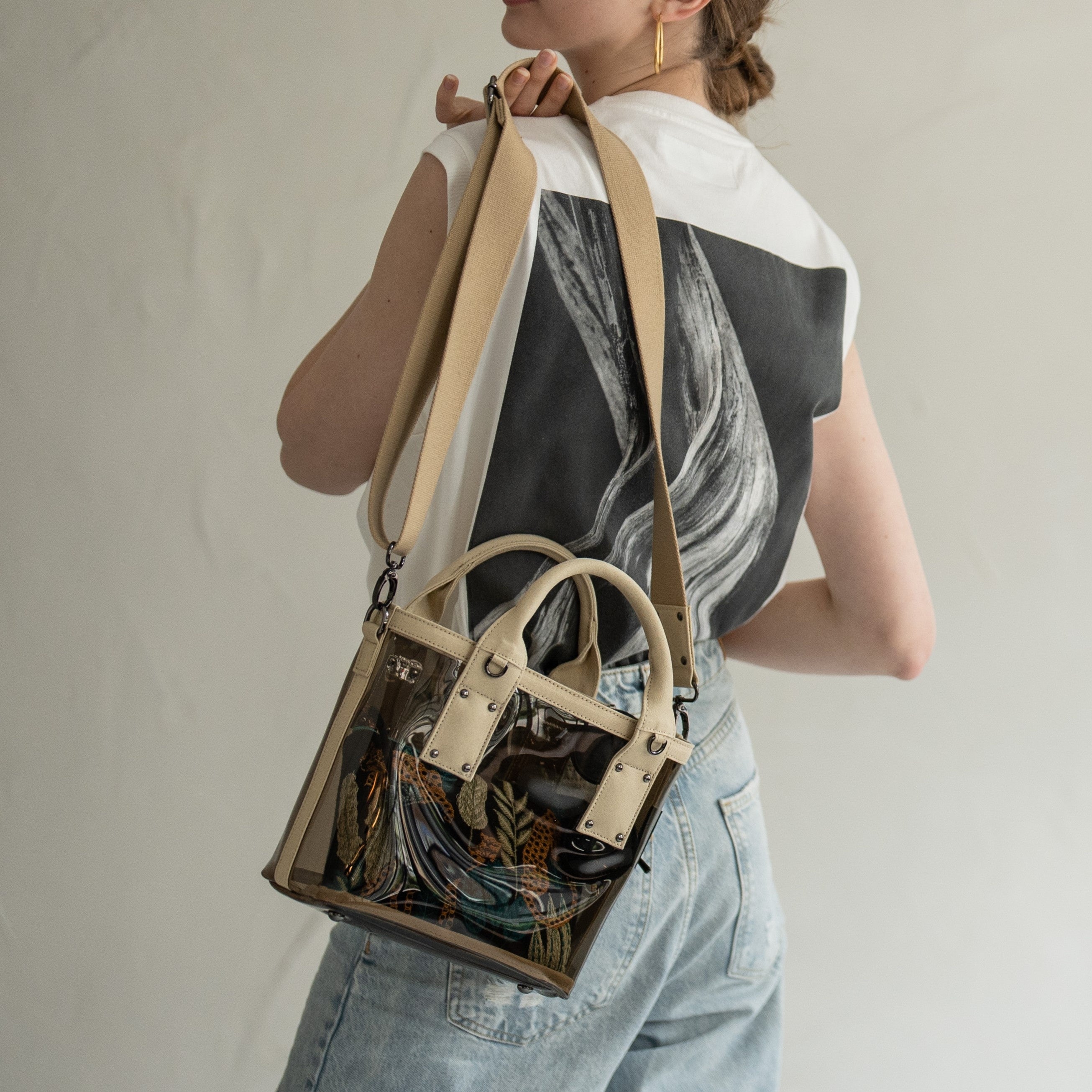 バッグの中身を見せて、おしゃれな抜け感を楽しむクリアバッグ。