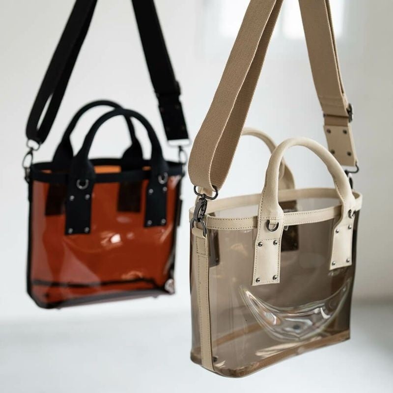 【新商品】着こなしに変化を与えるクリアな光沢感と、バイカラーが大人かわいい。『2wayクリアバッグ』からコンパクトサイズが新登場!