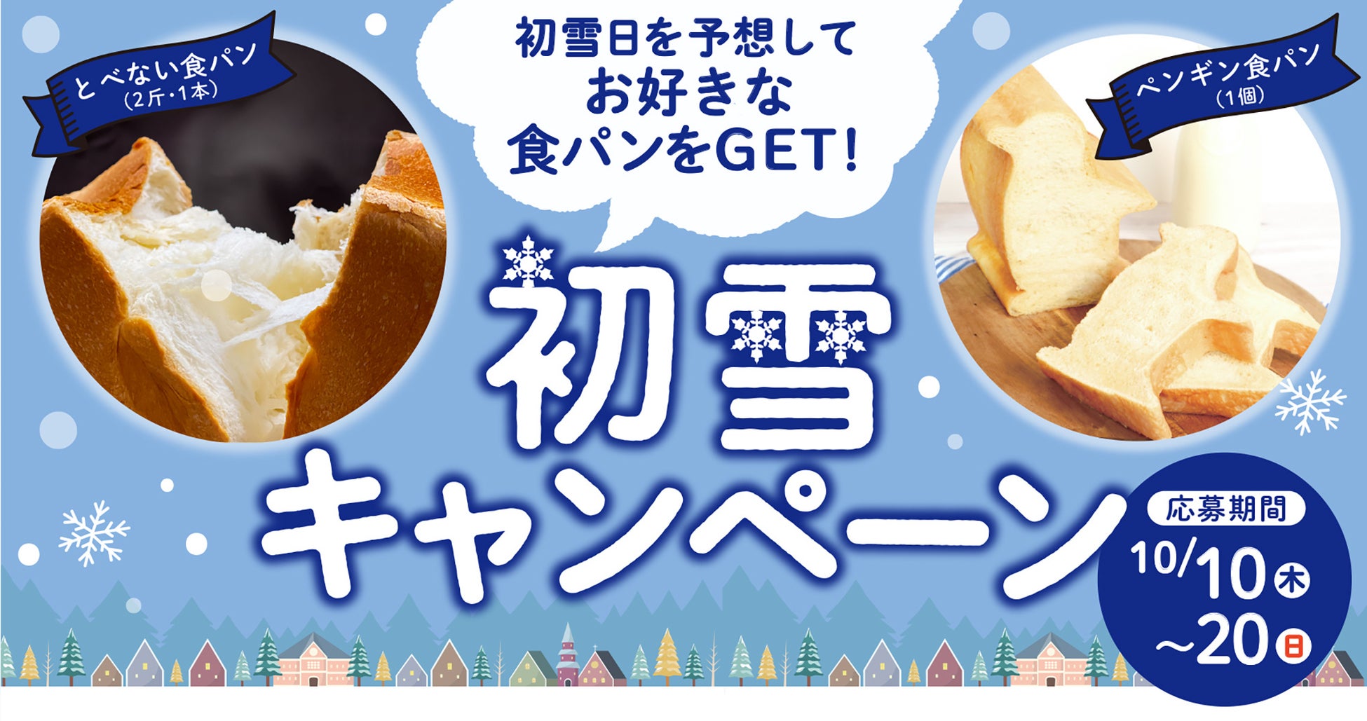 ペンギンベーカリーでは、北海道・札幌の初雪日を予想して、見事的中した方全員にお好きな食パンをプレゼントする『初雪キャンペーン』を今年も開催いたします。