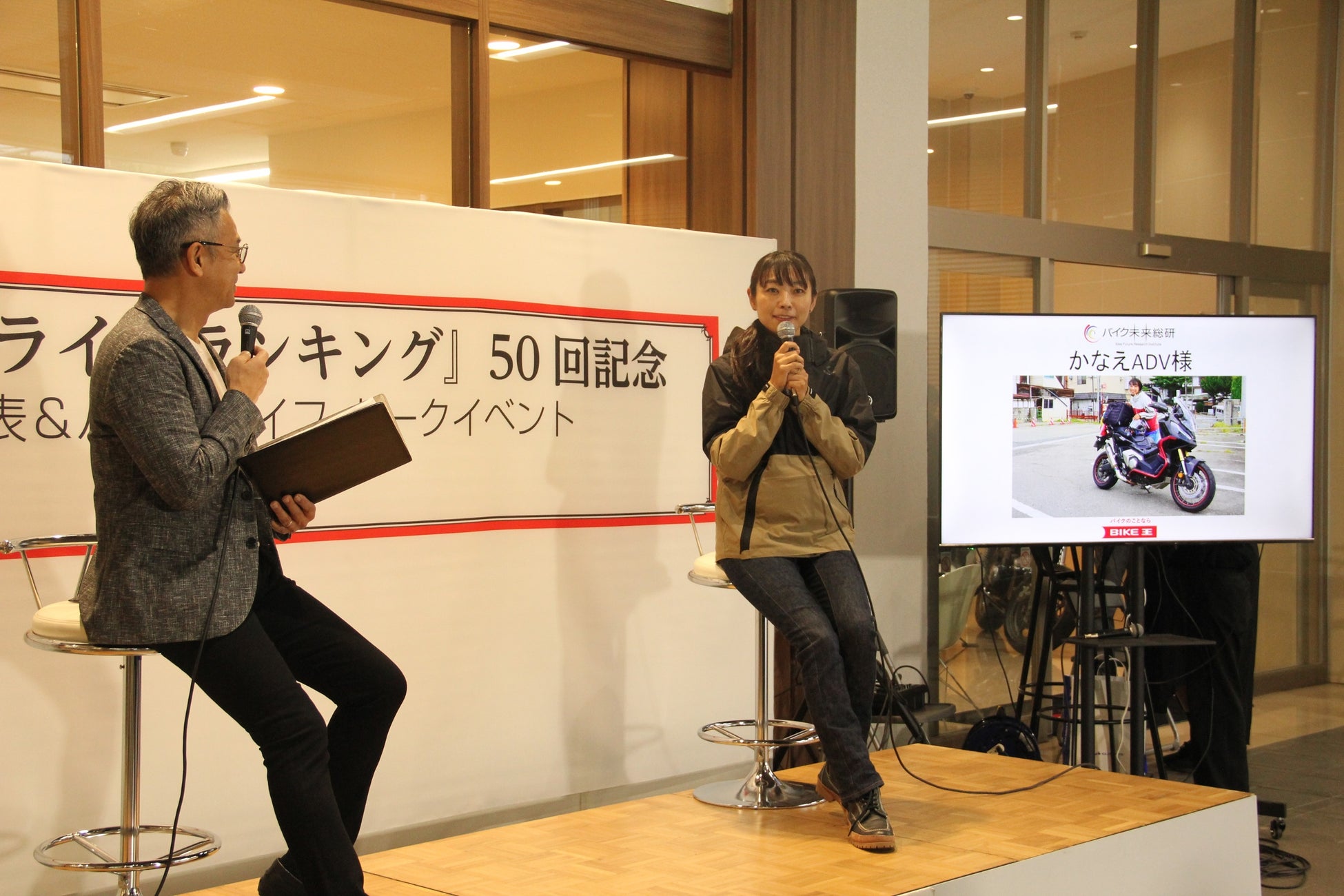 今回のランキング1位のホンダ・X-ADVにちなみ、人気バイクインフルエンサーのかなえADVさんをお呼びし、バイクライフトークを実施
