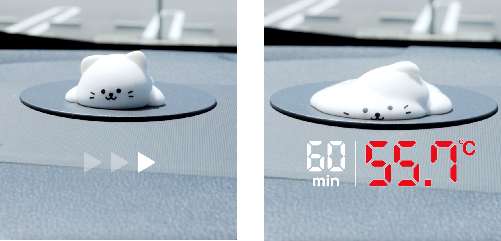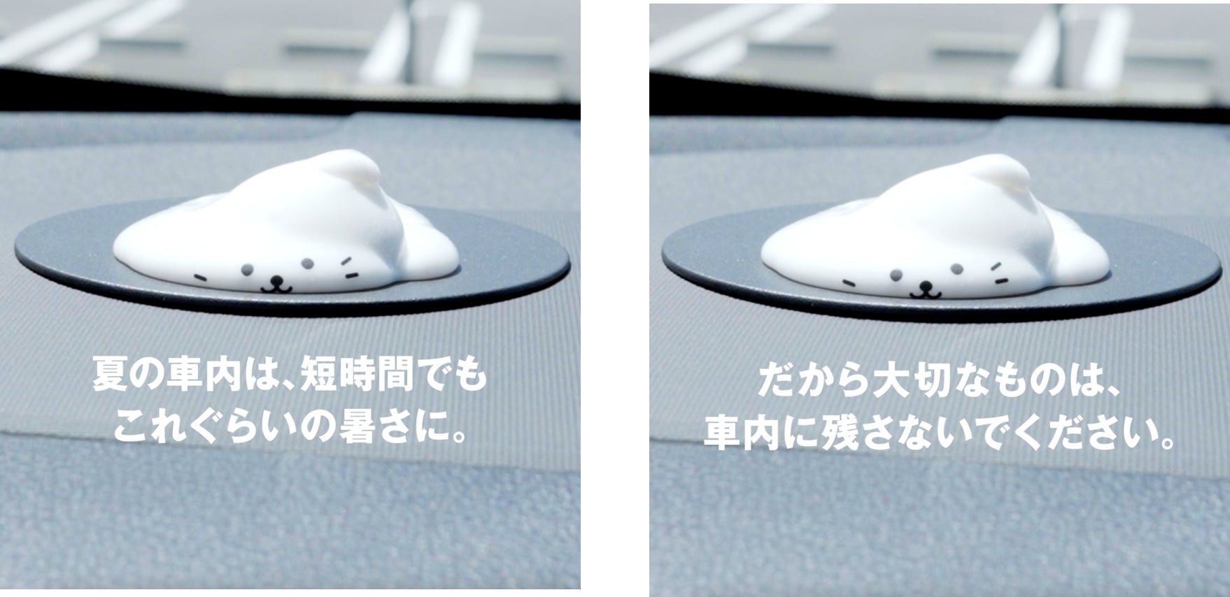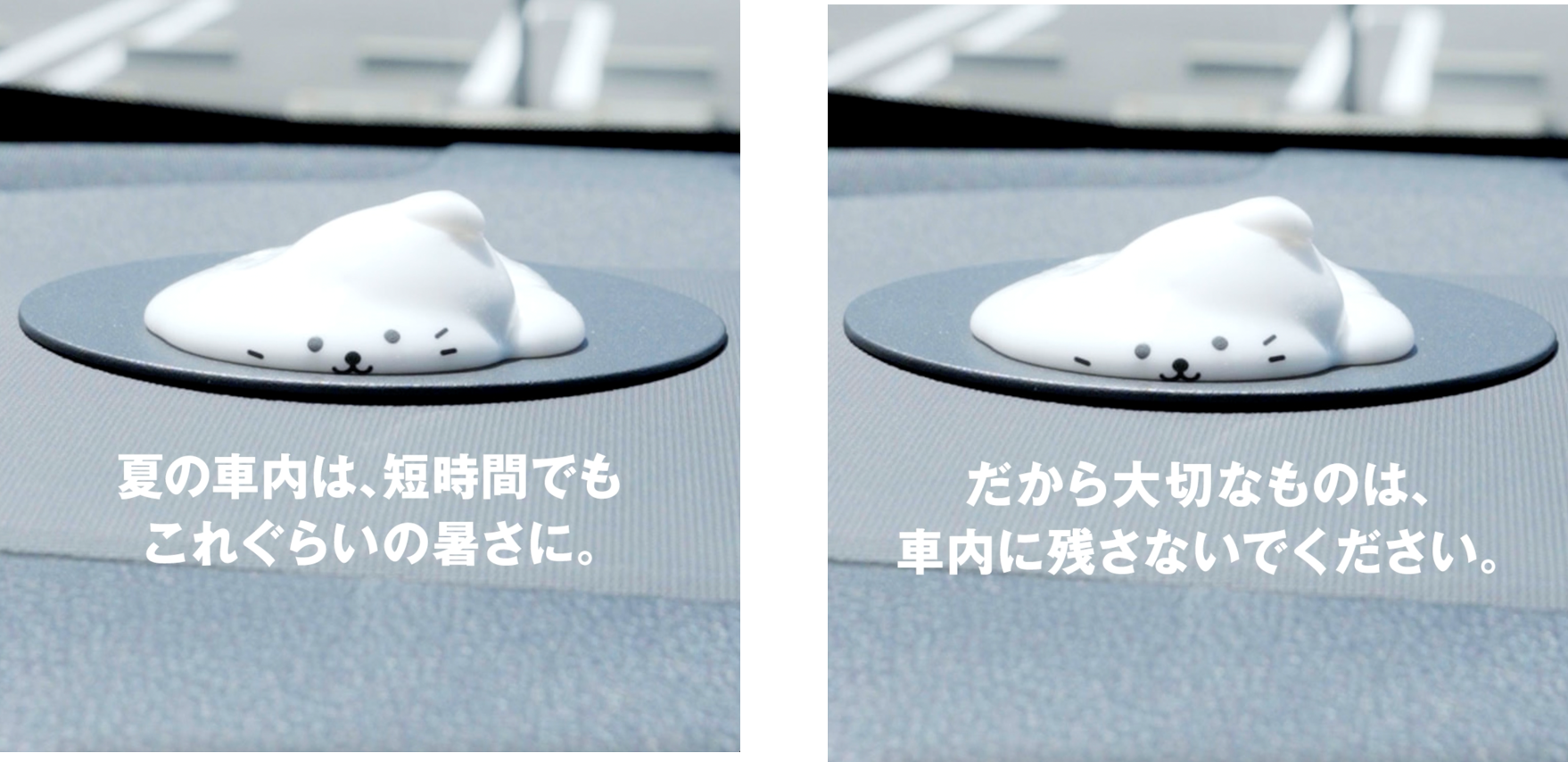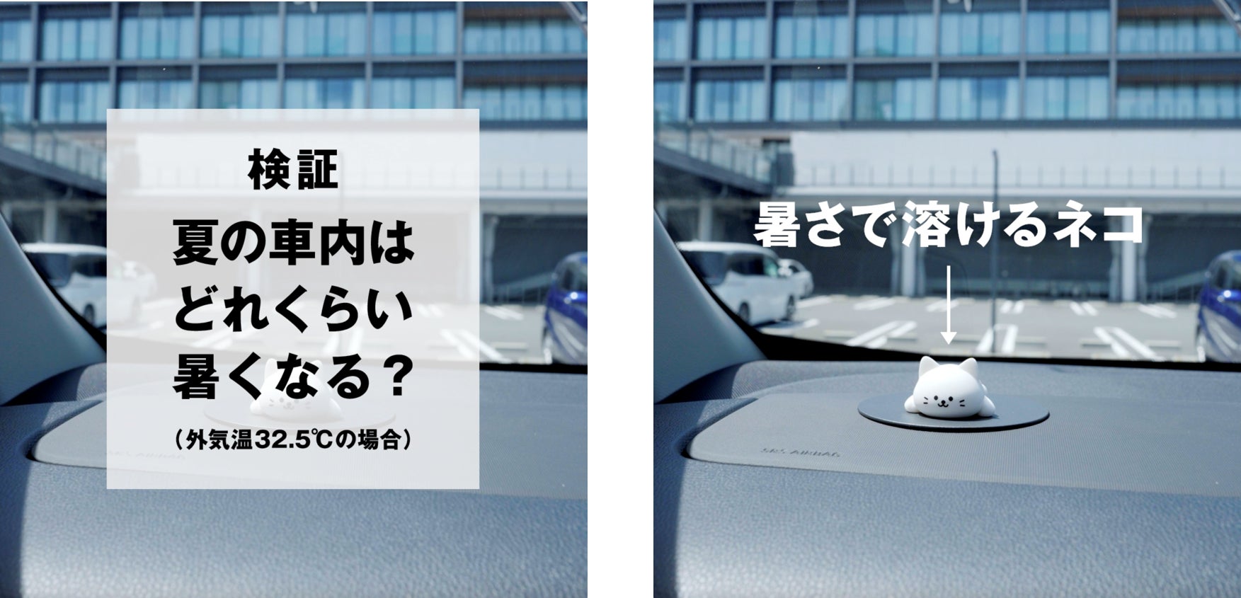 これらの事を受けて、トヨタでは夏場の車内熱中症の危険性について訴求するプロジェクト『トヨタのとけネコ』プロジェクトを8月7日(水)より始動いたします。ネコ型フィギュアが車内温度上昇するたびに溶けていく、車内温度上昇を可視化するコンセプトムービー「トヨタのとけネコ」を公式Xで同日より公開。また、 8月8日(木)から8月18日(日)まで、公式Xではお出かけ時のシチュエーションに合わせて溶ける様子を描いた「#今日のとけネコ」を投稿します。