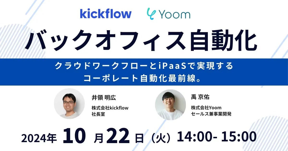 ノーコードでAPI連携を実現する「Yoom」とクラウドワークフロー「kickflow(キックフロー)」と、バックオフィスの業務自動化をテーマに共催セミナー開催決定!