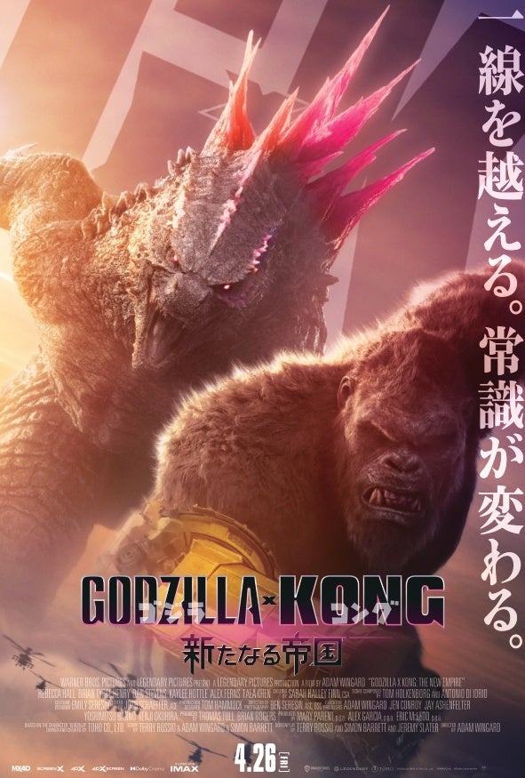 そして時は2024年。<ゴジラ70周年×「モンスター・ヴァース」シリーズ10周年>という史上初のビッグアニバーサリーイヤーを迎え、世界各地で“ゴジラ旋風”が巻き起こる中ついに、全世界待望、「モンスター・ヴァース」シリーズ最新作にして超大作、『ゴジラxコング 新たなる帝国』が4月26日(金)に日本公開!
