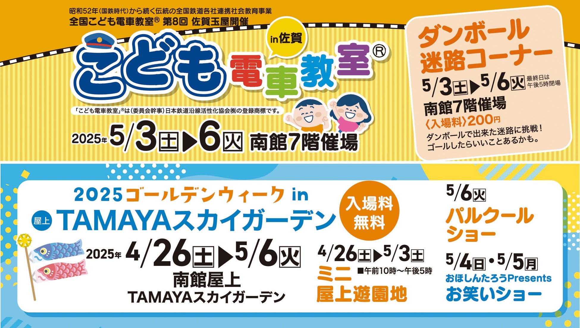 株式会社佐賀玉屋(本社:佐賀県佐賀市中の小路2−5、代表取締役社長 山越 悠登)は、2025年4月26日(土)から2025年5月6日(火)までのゴールデンウィーク期間中、「南館7F催場」や「屋上TAMAYAスカイガーデン」を中心に家族で楽しめる多彩なイベントを開催いたします。