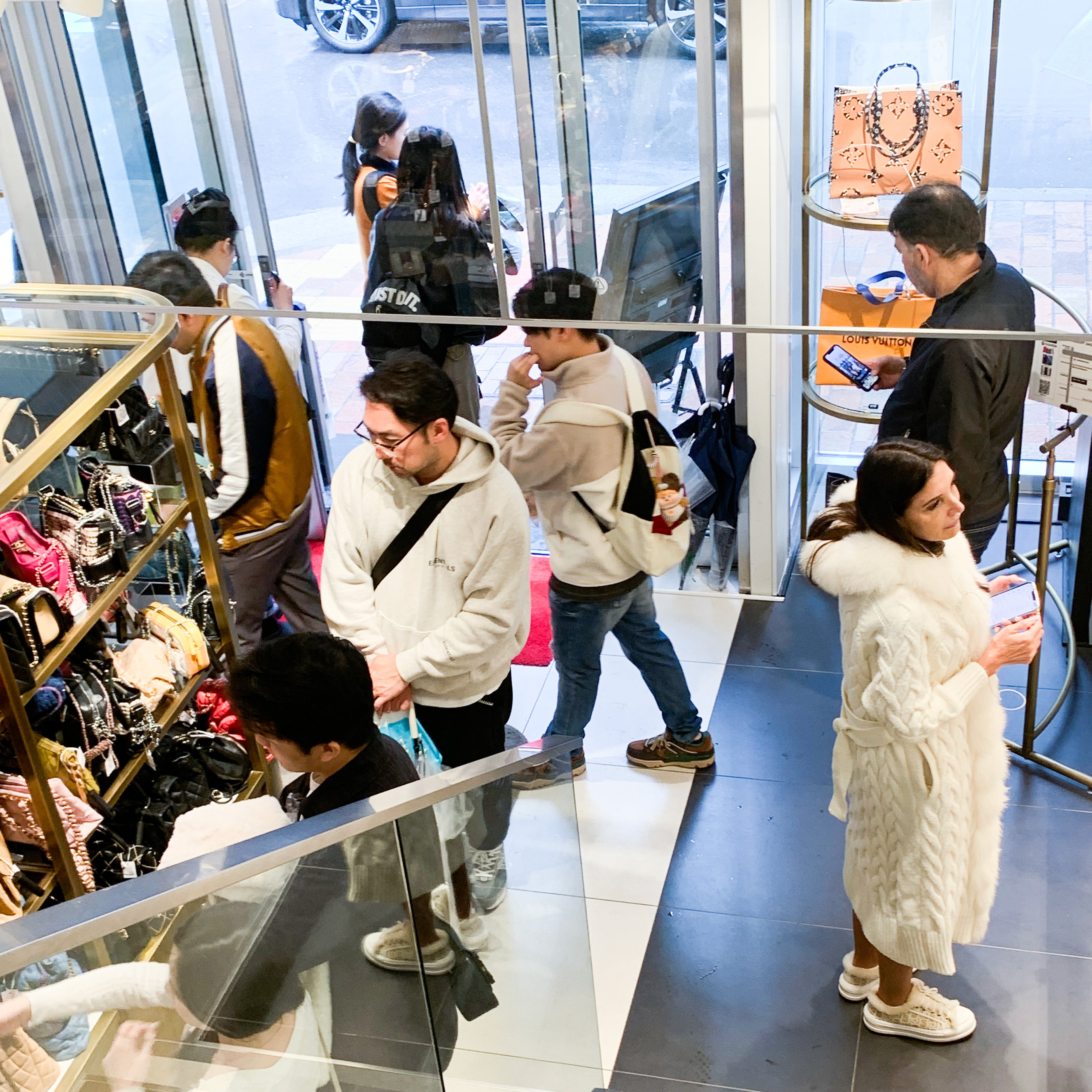 現在の店頭では、国内のお客様からお買取りしたヴィンテージバッグが店頭に並ぶと、連日来店される様々な国・エリアからの訪日観光客(インバウンド)によって次々と購入されていくという、非常に活発な「経済の循環」が生まれています。