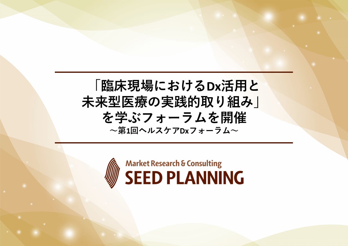 株式会社シード・プランニング(本社:東京都文京区、代表取締役社長:梅田 佳夫)は2025年2月27日(木)に次世代ヘルスケア(医療等を包含する広義のヘルスケア)に係る取組みについてフォーカスをあてた「第1回ヘルスケアDxフォーラム~臨床現場におけるDx活用と未来型医療の実践的取り組み~」を開催します。