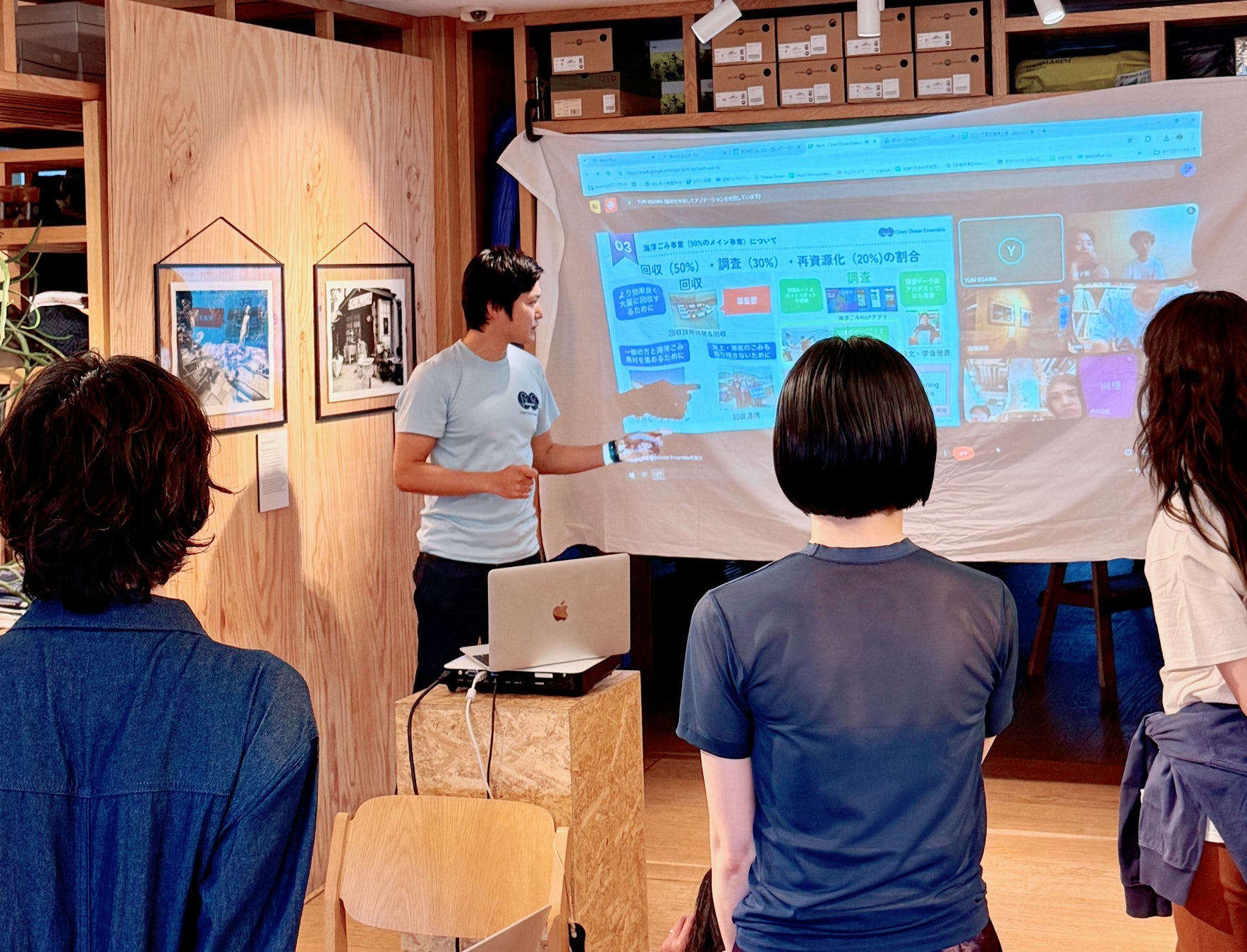 このご厚意を受け、クリーンオーシャンアンサンブルは、2025年5月13日に【BEAMS様】のセレクトショップ〈Pilgrim Surf+Supply TOKYO〉(東京都渋谷区)にて、団体紹介の講演会を実施いたしました。