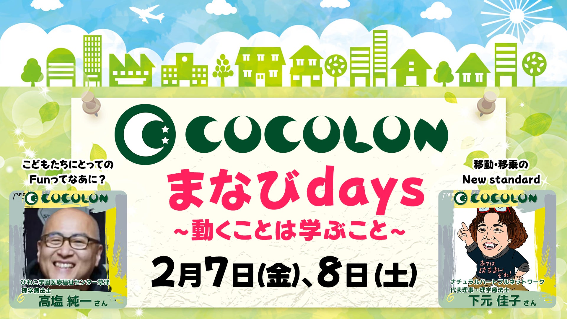 重症心身障がい児のと家族や支援者向けに学び・遊び・情報を提供をする「COCOLON」(運営:特定非営利活動法人EPO、東京都江戸川区、代表:齋藤えりか)は、2025年2月7日(金)、8日(土)にCOCOLON BASEで「COCOLONまなびdays」を開催します。本イベントでは、重症心身障がい児の支援で活躍する高塩純一氏と下元佳子氏を講師に招き、「重症心身障がい児にとってのFun」や「移動・移乗のNew standard」「リフトの試乗体験」をテーマに日々の支援や子育て、在宅生活に役立つ情報を提供します。ハイブリッド形式での開催のため、オンラインで参加することも可能です。