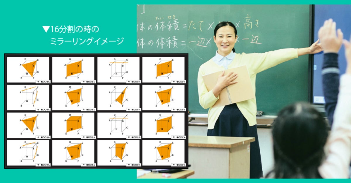 専用のアプリ(マルチOS対応のミラーリングソフト)を利用することで、30人分の画面を同時にミラーリングすることができます。クラス全員の考えや発表を一気にミライタッチに投影することで、新しい学びや発見のある授業も可能です。