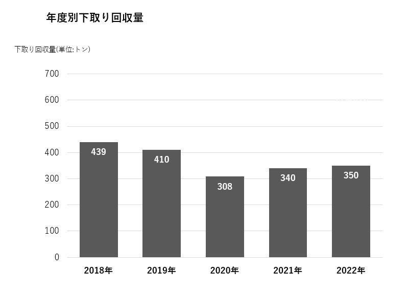 2018年には年間約439トンの不要品を回収していましたが、コロナ禍の影響で2020年には年間の回収量は約308トンまで落ち込みました。
