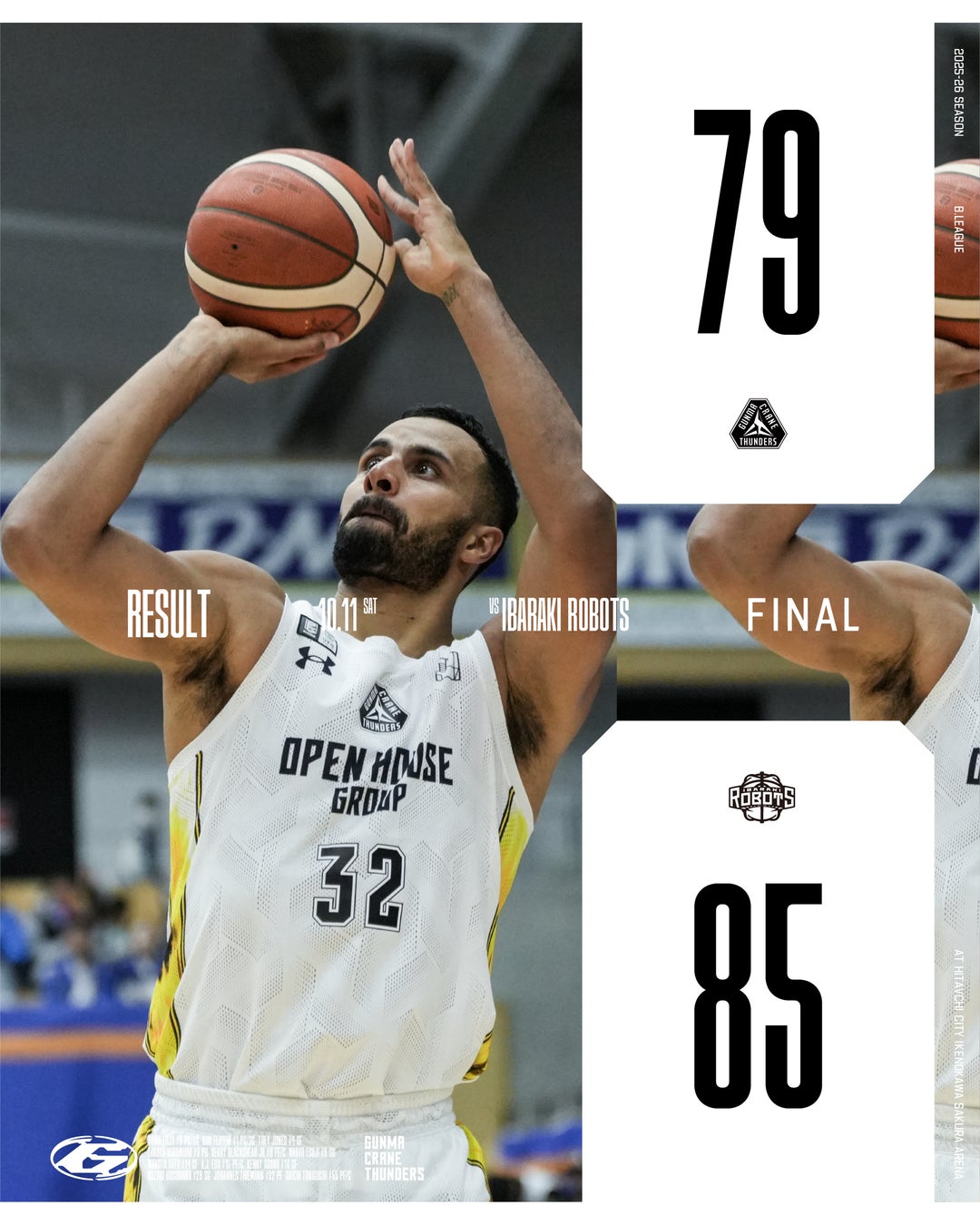 【群馬クレインサンダーズ:試合結果】10/11(土) vs 茨城ロボッツ りそなグループ B.LEAGUE 2025-26シーズン