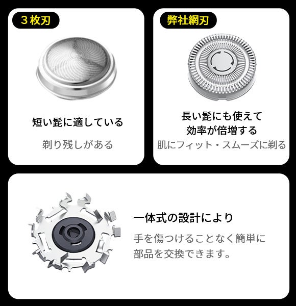 デュアル網刃で快適髭剃り