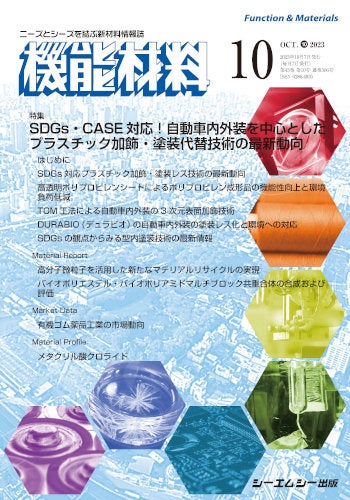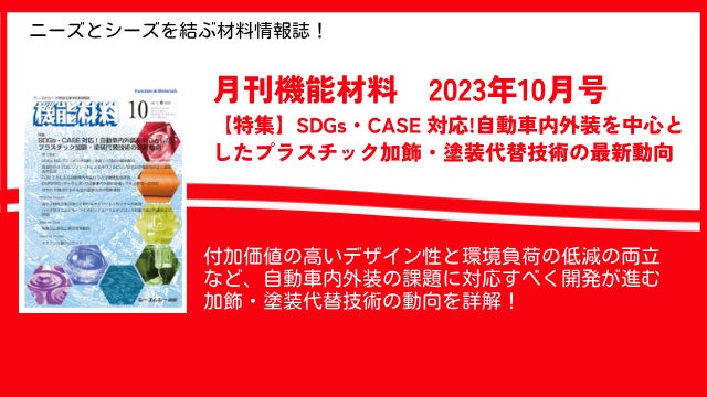 自動車内外装の加飾・塗装代替技術を特集!ニーズとシーズを結ぶ材料情報誌!月刊機能材料2023年10月号を10月7日に発売!