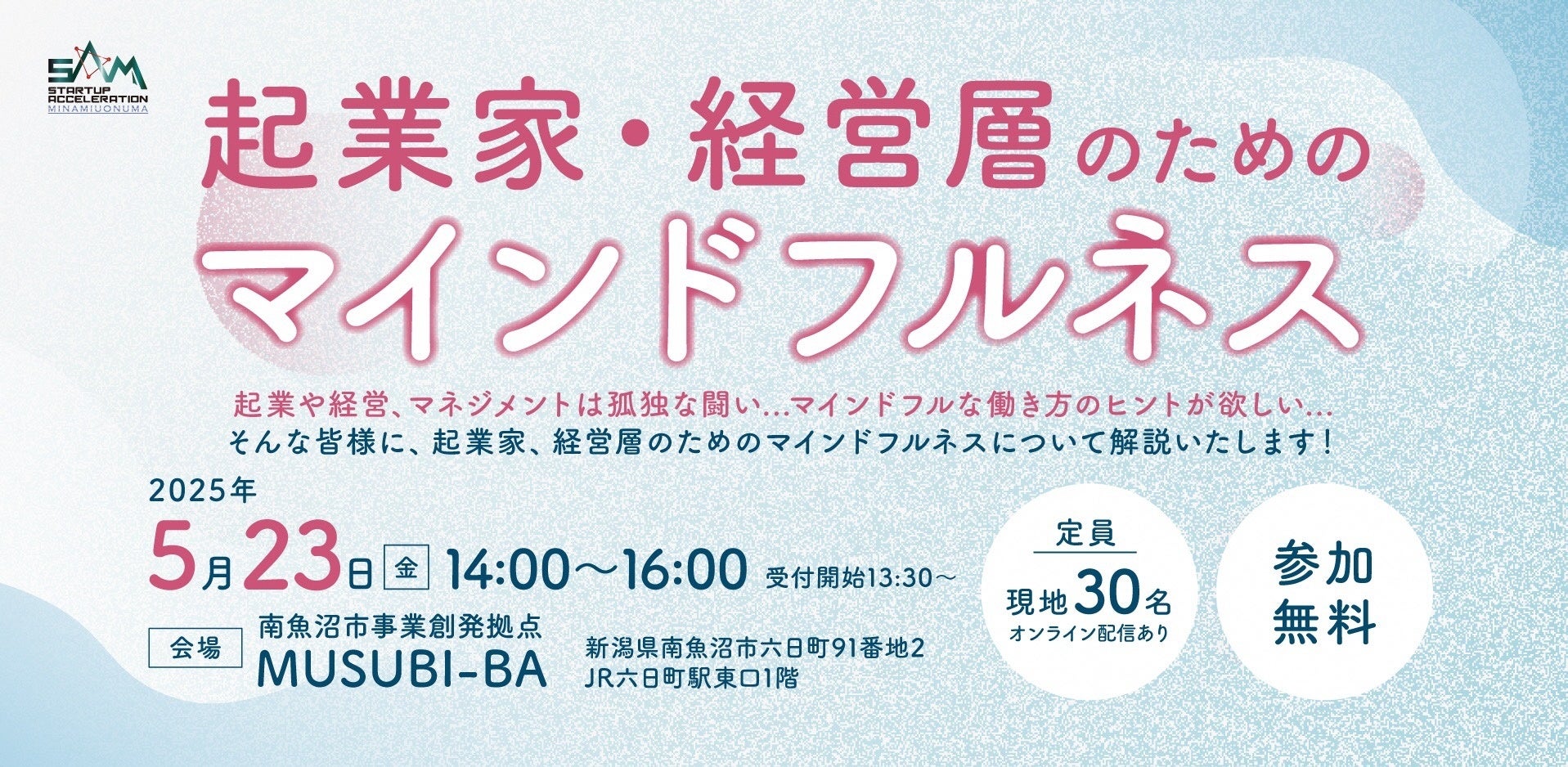 会場:南魚沼市事業創発拠点 MUSUBI-BA(新潟県南魚沼市六日町91番地2/JR六日町駅東口1階)