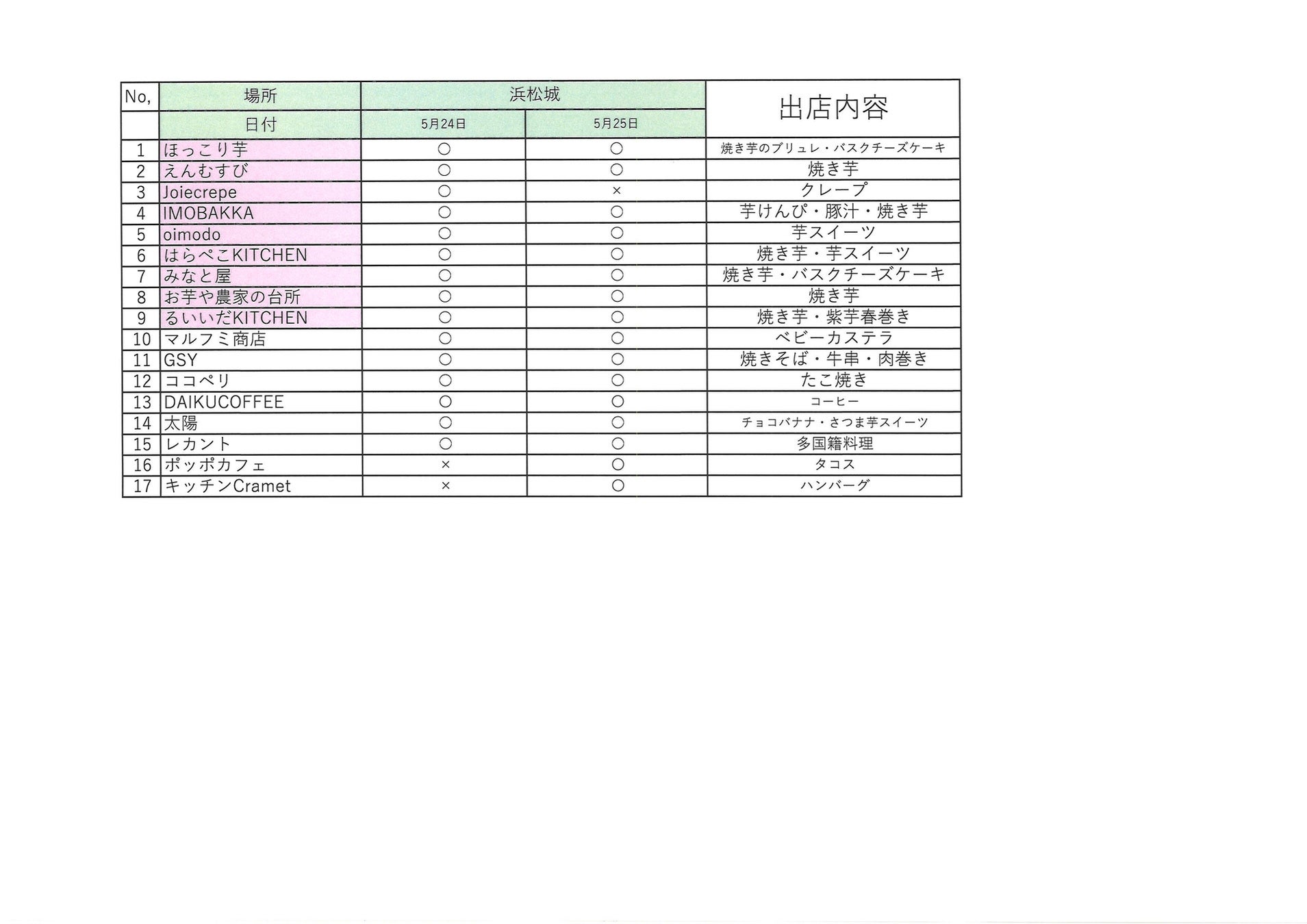 2025年5月24日25日開催第1回芋フェス!IN浜松城公園出店者決定!