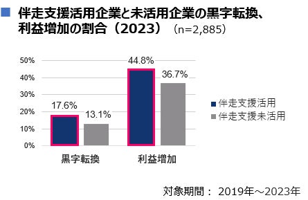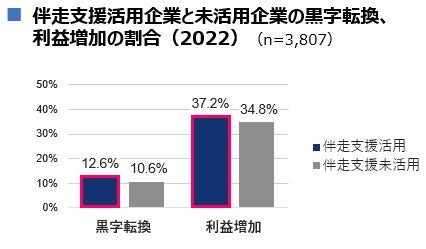 伴走支援※を活用している企業は未活用の企業と比べ黒字転換、利益増加の割合が高いという結果に。
