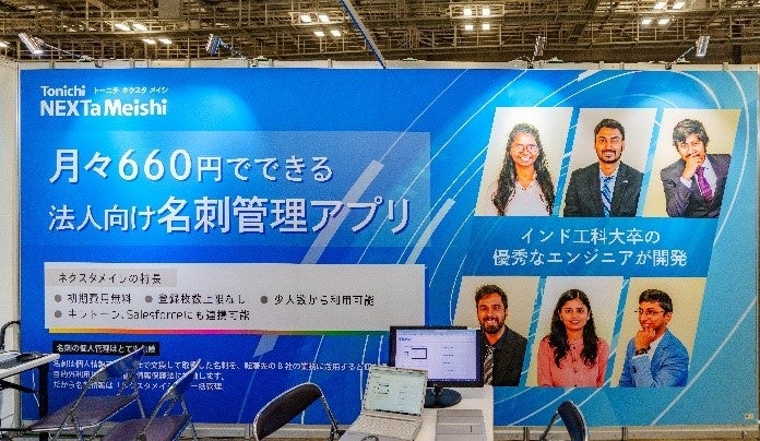 昨年9月21日放送のテレビ東京「WBS(ワールドビジネスサテライト)」でも紹介された「ネクスタメイシ」は、月々660円で▽名刺管理▽検索▽共有▽自動名寄せ▽経歴表示▽メモ書き▽タグ付け▽オンライン名刺交換――など多様な機能を装備している利用者急増中の名刺管理アプリです。展示会では、理系大学世界最高峰の一つと称されるインド工科大学卒のエンジニアもブースに立ち、名刺管理アプリの導入を検討されている皆様の疑問・質問・課題解決のお手伝いをいたします。